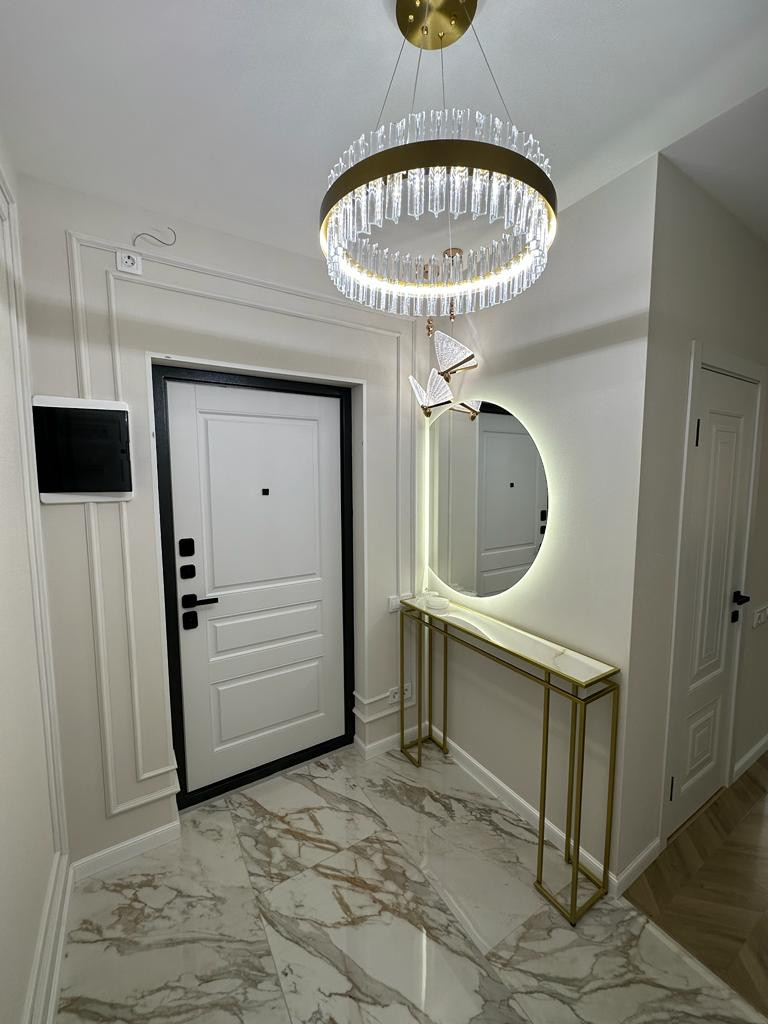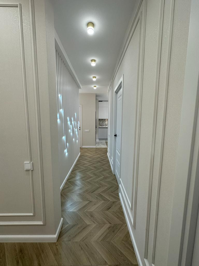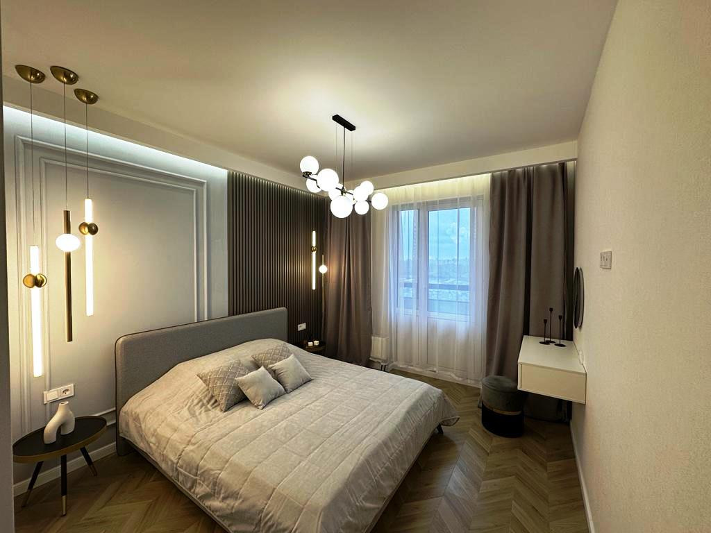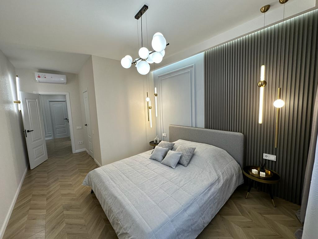 К продаже представлена новая, стильная 3-комн. квартира общей площадью 82 м² в ЖК Настроение. Квартира с дизайнерским ремонтом. Абсолютно новая мебель, кухонный гарнитур со встроенной техникой и предметы интерьера входят в стоимость, установлены 2 кондиционера. Функциональное планировочное решение: прихожая с большой гардеробной, просторная кухня-гостиная с выделенной нишей под TВ, спальня с мягким изголовьем кровати + гардеробная, 2 отдельные детские комнаты с возможностью размещения рабочей/учебной или игровой зоны (либо кабинет), санузел с ванной, балкон,