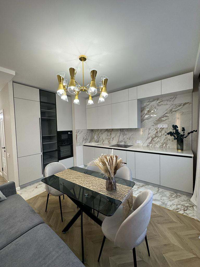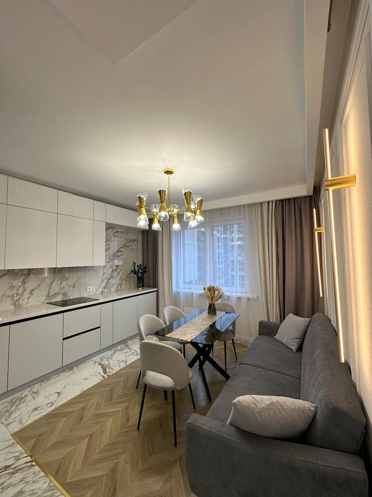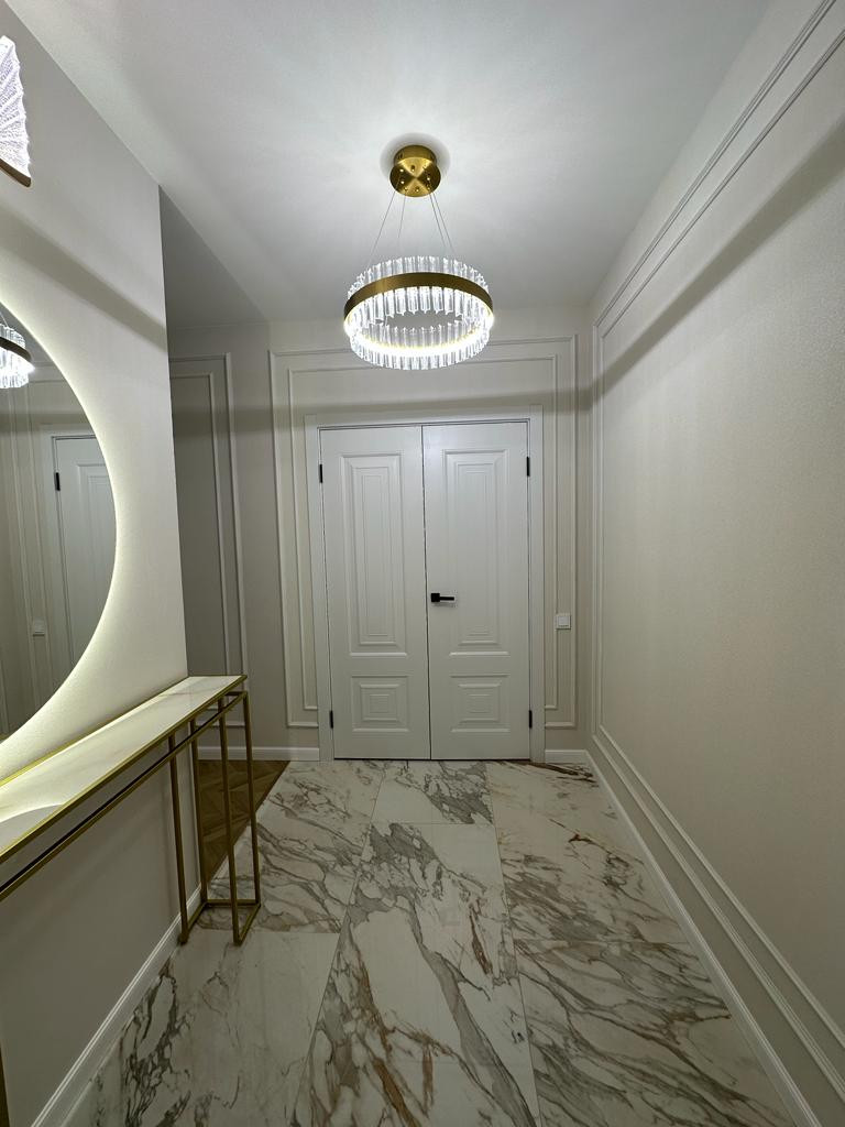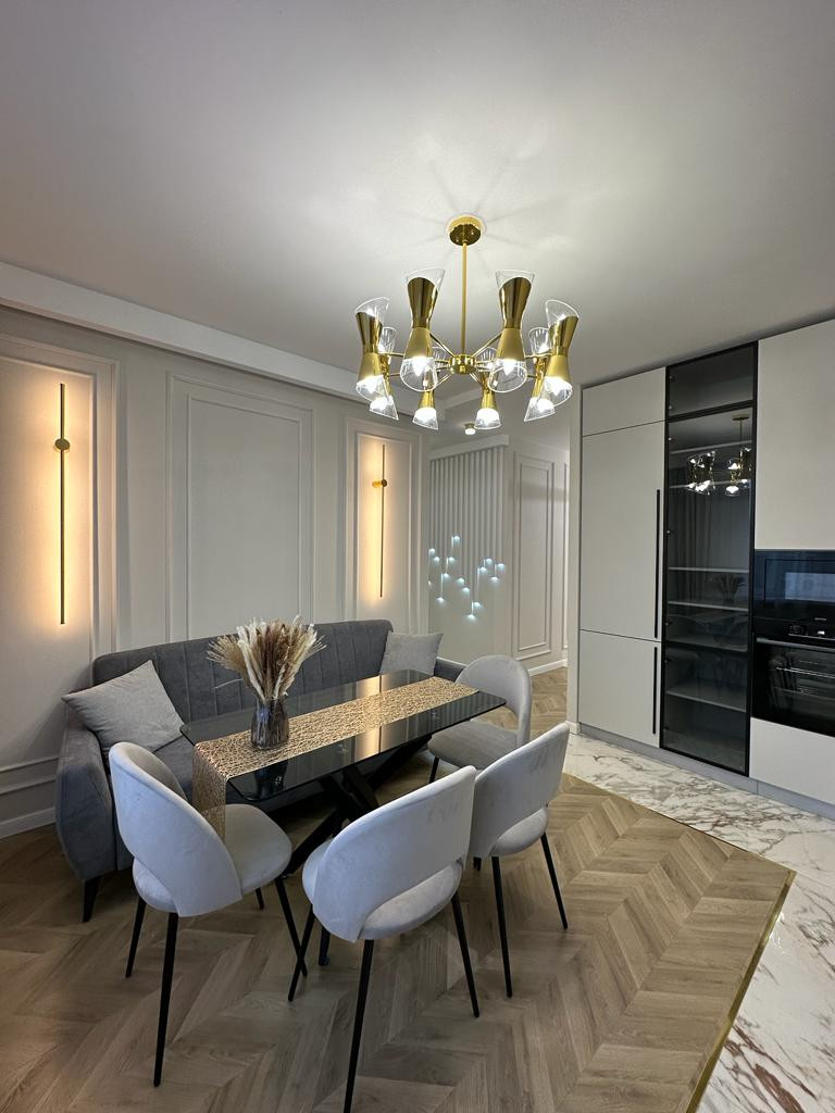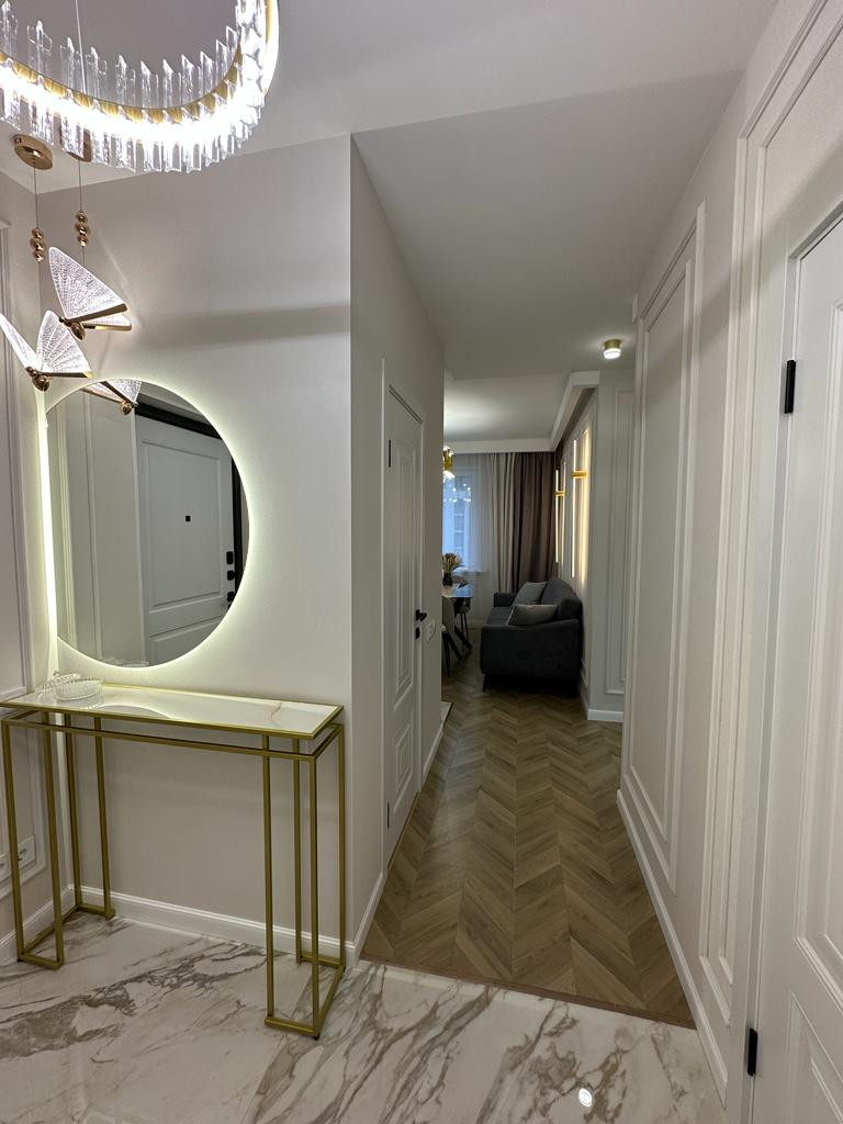 К продаже представлена новая, стильная 3-комн. квартира общей площадью 82 м² в ЖК Настроение. Квартира с дизайнерским ремонтом. Абсолютно новая мебель, кухонный гарнитур со встроенной техникой и предметы интерьера входят в стоимость, установлены 2 кондиционера. Функциональное планировочное решение: прихожая с большой гардеробной, просторная кухня-гостиная с выделенной нишей под TВ, спальня с мягким изголовьем кровати + гардеробная, 2 отдельные детские комнаты с возможностью размещения рабочей/учебной или игровой зоны (либо кабинет), санузел с ванной, балкон,