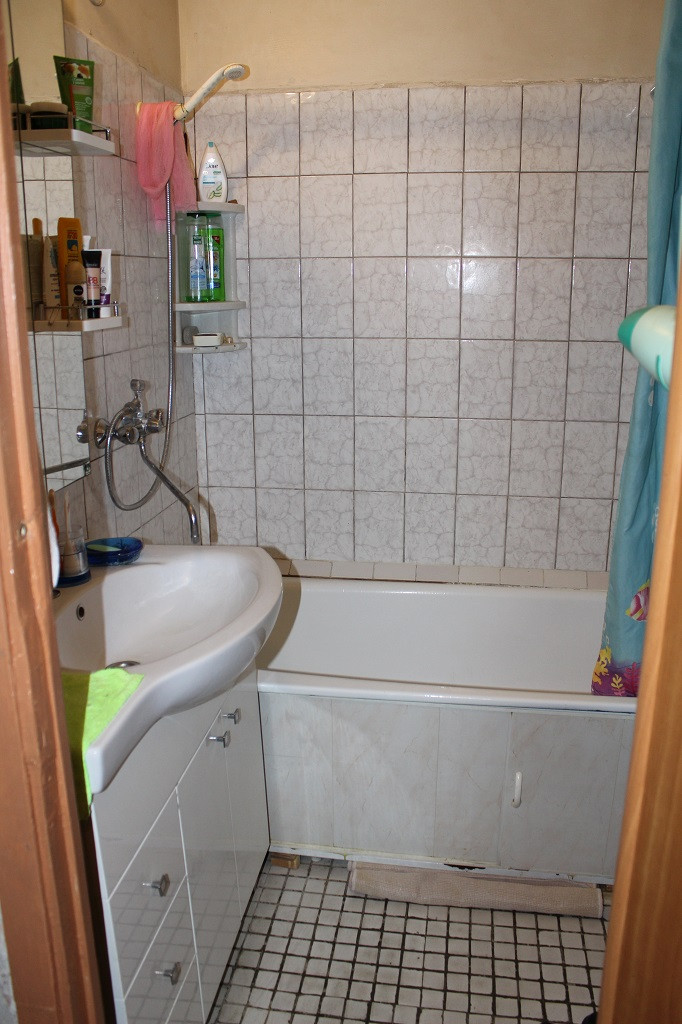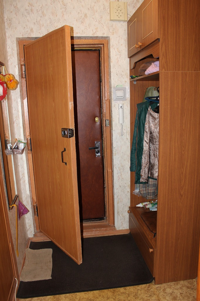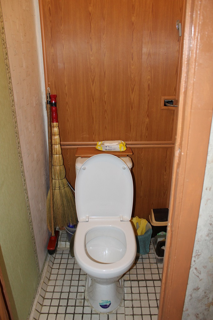 Ванна и туалет раздельные. В ванной тумбочка под раковиной и полка со шкафчиками и зеркалом. В коридоре две квартиры за металлической дверью. Соседи культурные и спокойные люди. В подъезде консьерж.