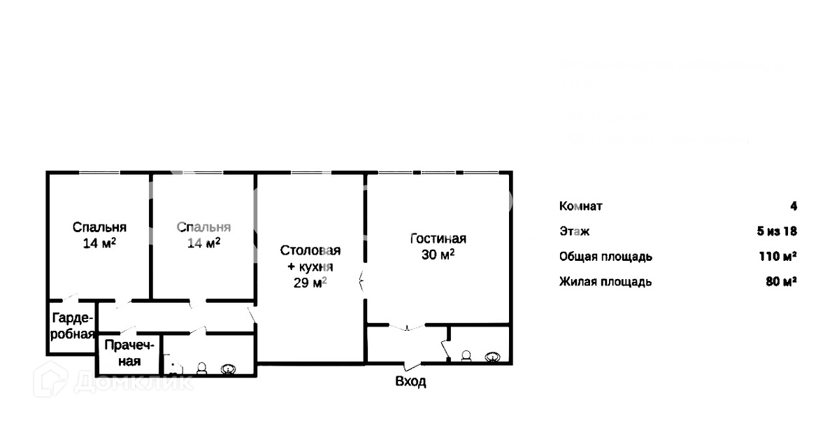 В хозяйской спальне есть отдельное помещение гардеробной. Также есть постирочная с выходом на чёрный ход.