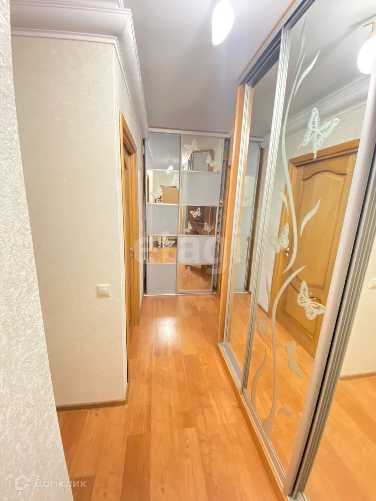 Пол в комнатах-ламинат, в кухне и прихожей -плитка.