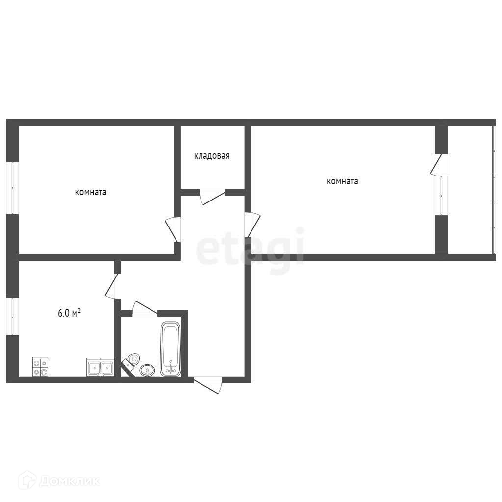 Комнаты изолированные (распашонка).