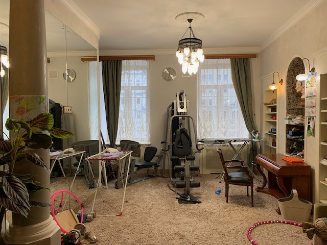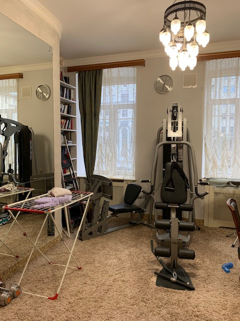 Планировка квартиры: общая площадь 161 кв.м., жилая площадь квартиры 81.2кв.м.(детская комната-26,7кв.м., спальня 15кв.м. с гардеробной комнатой 12кв.м., спортзал(можно использовать как комнату, кабинет)-39,5кв.м. с выходом в сауну, мини бассейн, большая кухня-гостиная – 41,5кв.м., коридор-12,9кв.м. 3 санузла. В квартире 8 окон, что делает очень светлой. 4 окна выходят на Садовое кольцо-спальня и спортзал, 4 окна в тихий двор(кухня-гостиная и детская). Установлена система кондиционирования, теплые полы. Ремонт делался для себя с использованием качественных стройматериалов. Балкона в квартире нет. Высота потолков по БТИ 3,5м. Во дворе дома есть парковка(стихийная). В доме проведен газ, но практически все квартиры используют водонагреватели и электричество. В подъезде всего 15 квартир и 6 нежилых помещений.