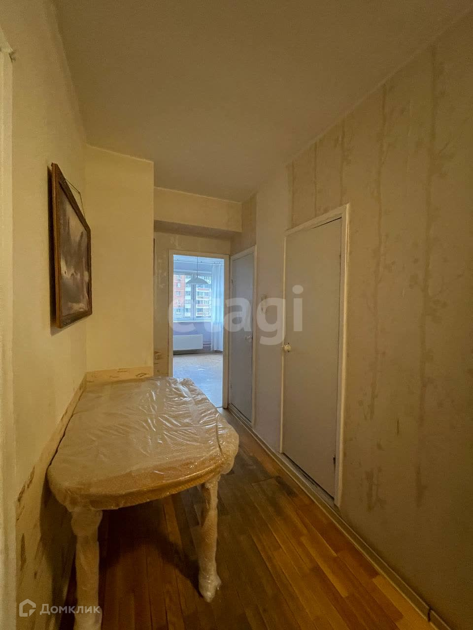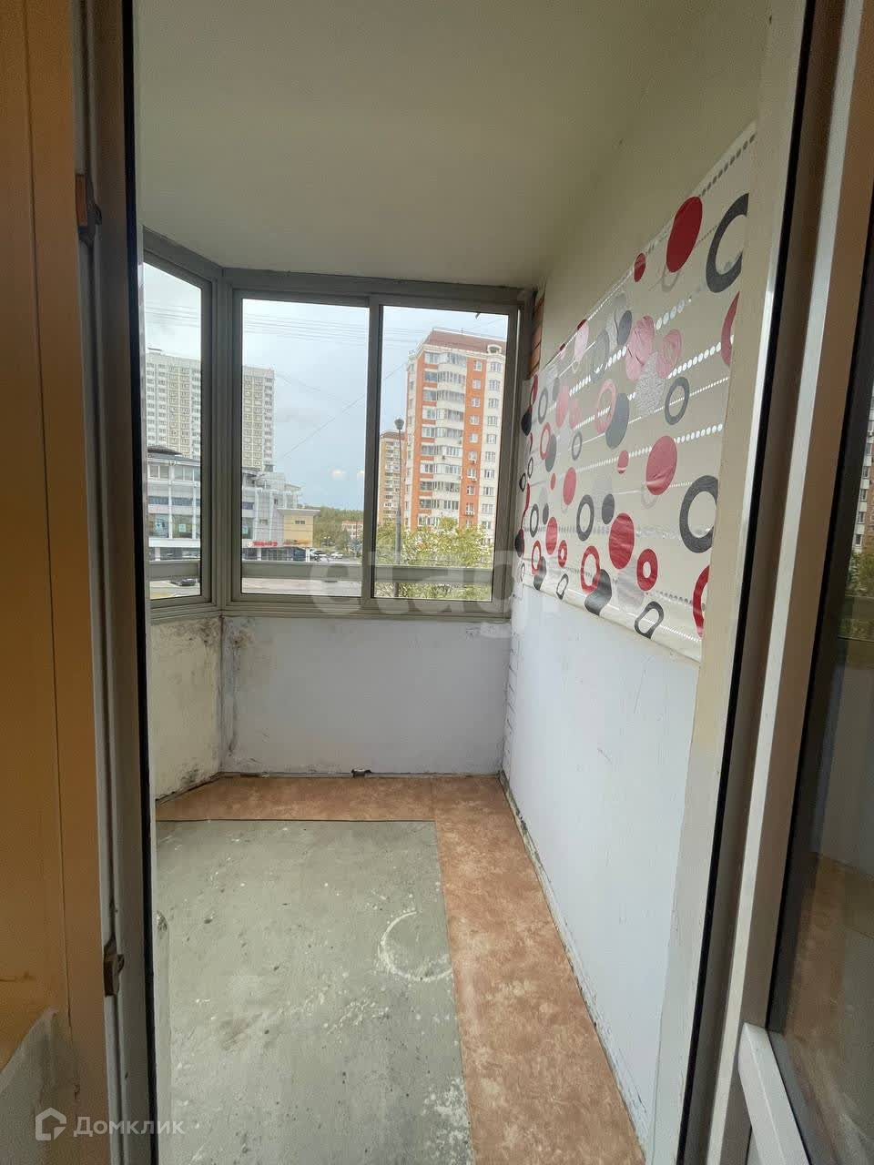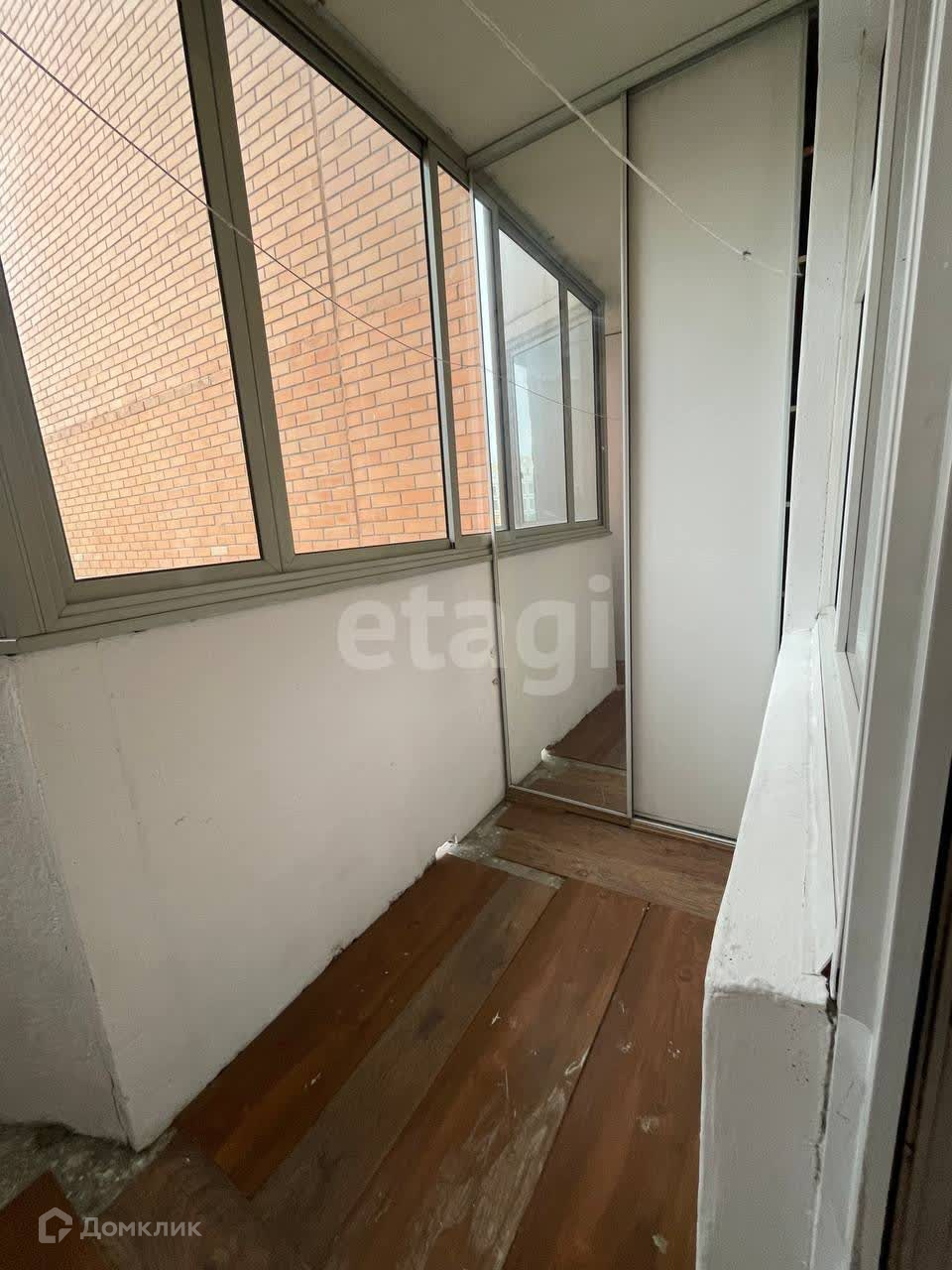 2 лоджии с фасадным остеклением, на большой лоджии- глубокий встроенный шкаф от пола до потолка с большими раздвижными зеркальными створками.