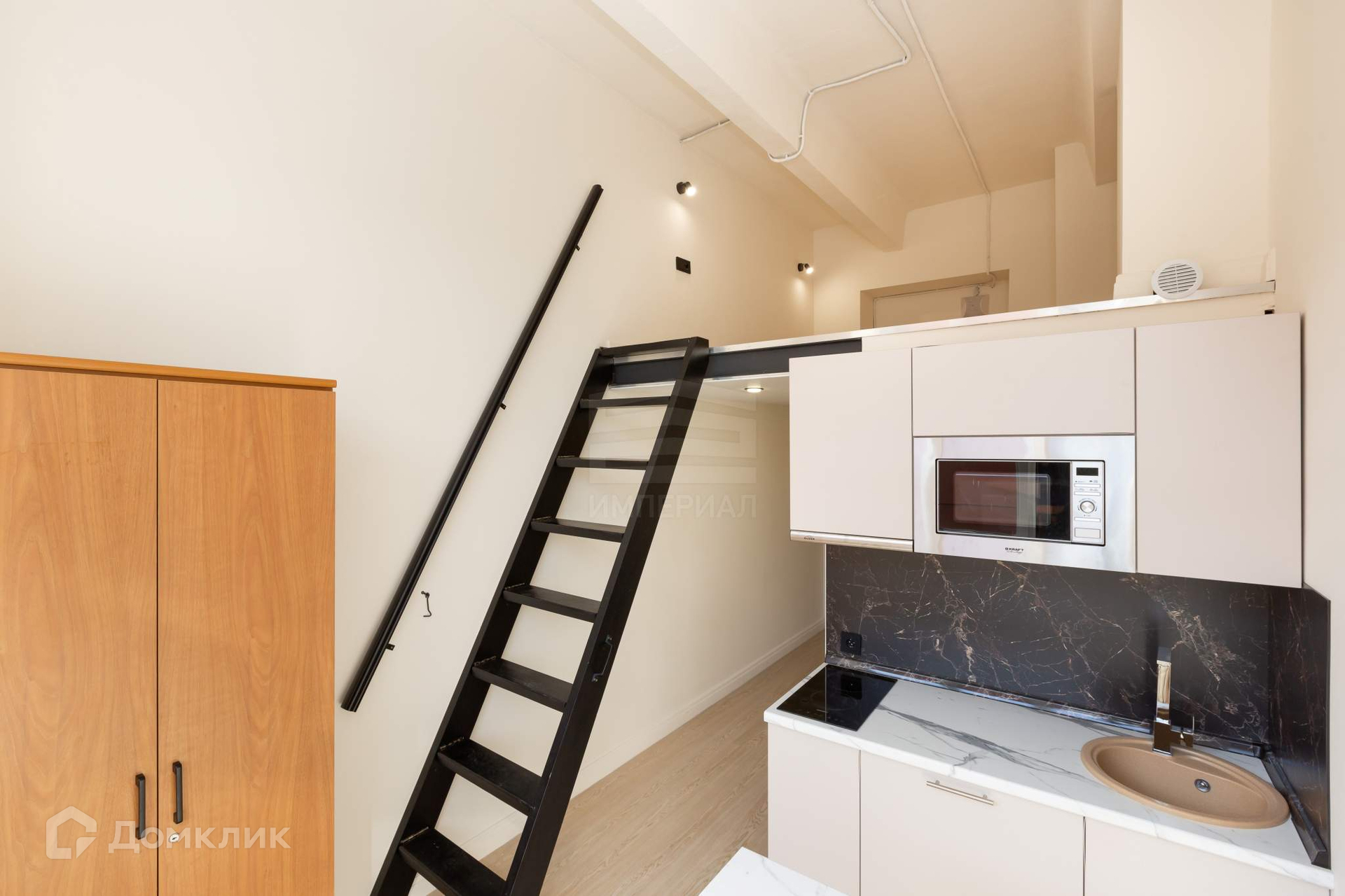 Студия с мебелью и техникой! Полноценный второй уровень!