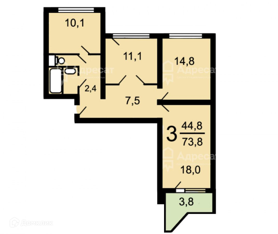 Общая площадь 73.8 м2
