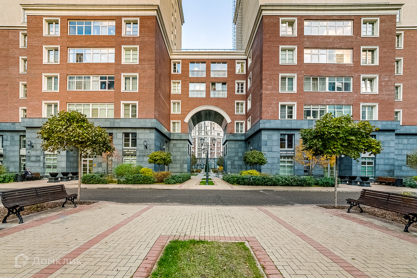 На территории разбит английский сад, много цветущих деревьев. Двор очень уютный и комфортный. Обустроены большая детская и спортивная площадки.