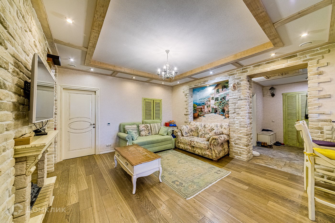 Квартира с отделкой в стиле Прованс. Мебель и декоративные элементы в квартире выполнены на заказ. На стенах ручная авторская роспись.