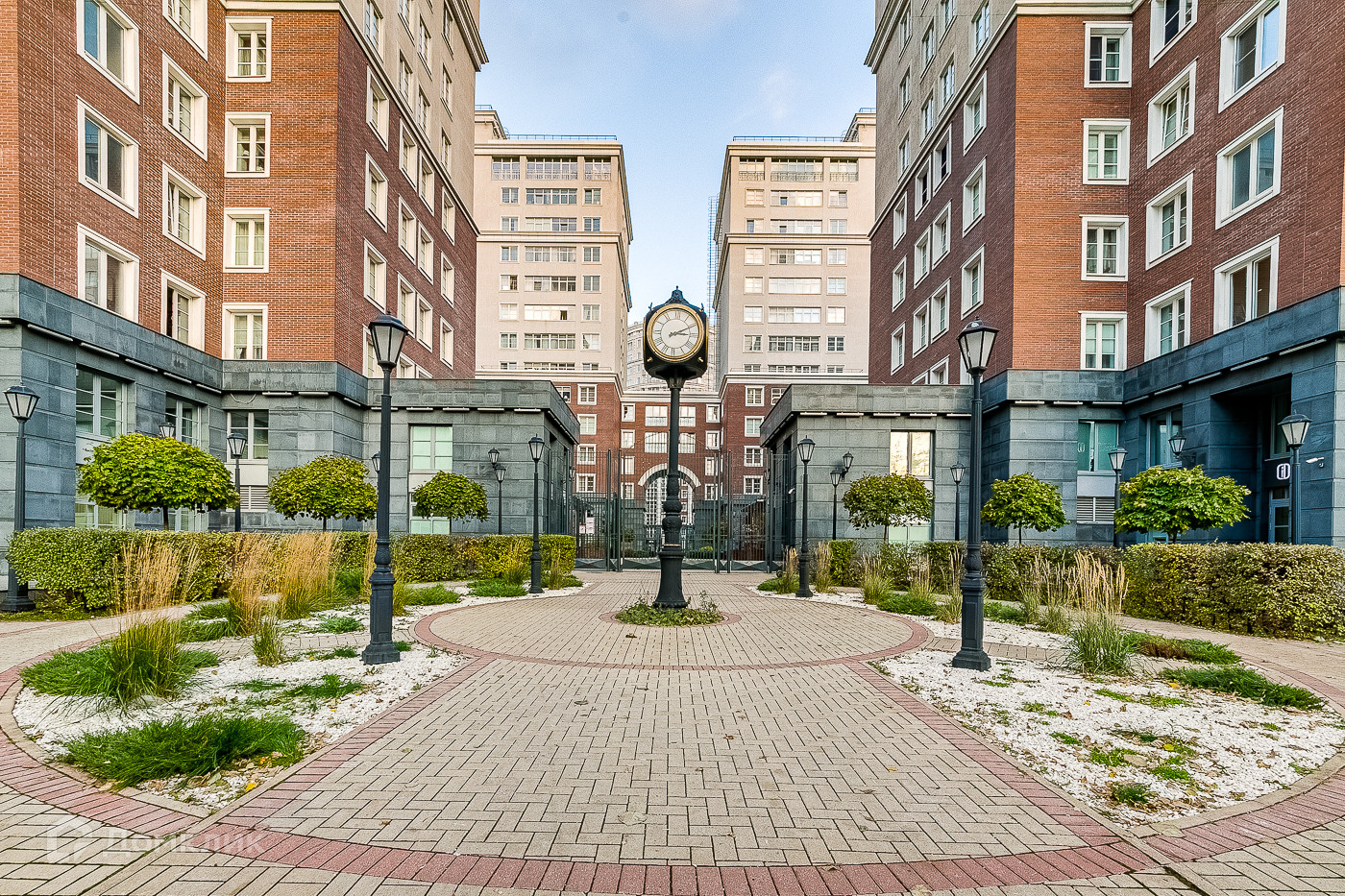 Территория комплекса огорожена и находится под круглосуточным видеонаблюдением, доступ осуществляется по индивидуальной ключ карте. В каждом подъезде есть дополнительный пункт охраны. Так же предусмотрены места для хранения велосипедов и колясок.