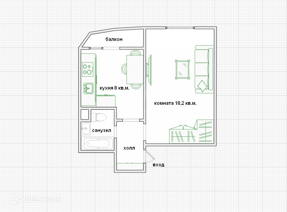 Жилая площадь 18 м2