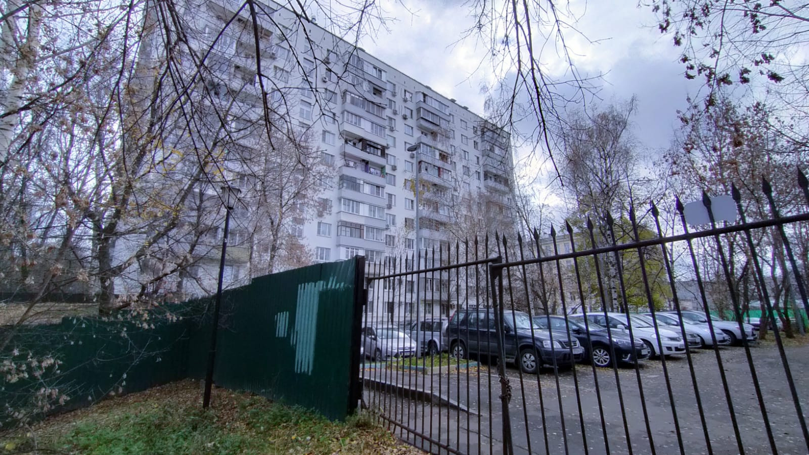 Территория дома огорожена, шлагбаум (всегда есть парковочные места)