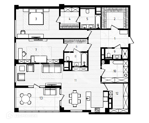 4-комнатная квартира, 163 м2, этаж 13 / 14, на продажу в Москве, Большой Строченовский переулок, 9