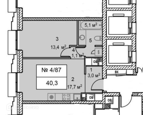 Общая площадь 40.3 м2