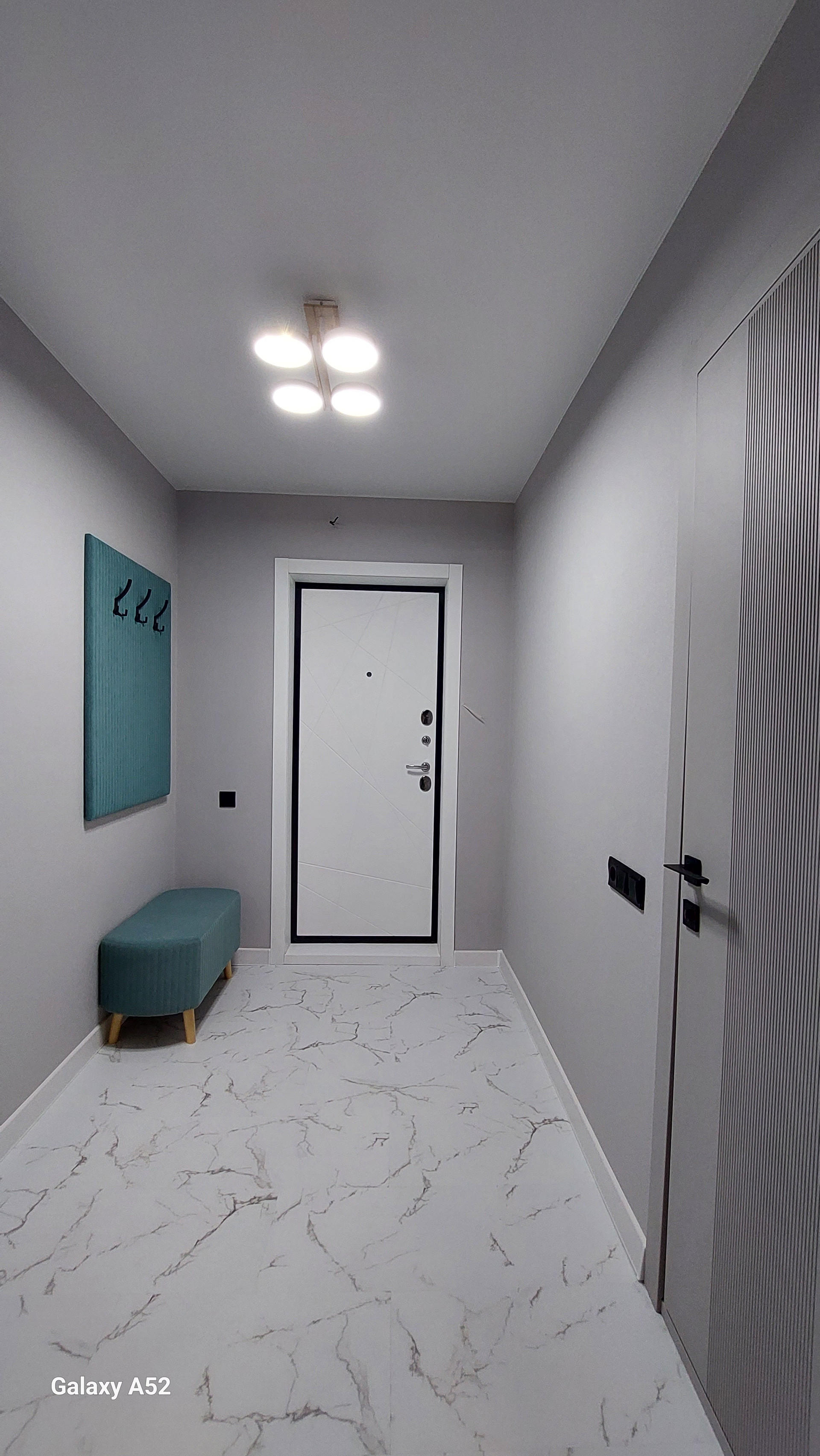 При входе в квартиру установлена добротная 100 кг. дверь. ШИРОКИЙ коридор. Стоит мягкая банкетка и уютная вешалка. Есть ниша под шкаф-купе. На полу КВАРЦВИНИЛ под белый мрамор  (не боится влаги, всегда теплый). КУХНЯ сделана на заказ, приятного серого цвета с минимальным количеством ручек, шкафы под потолок. Установлена глубокая керамическая мойка с гнущимся краном (очень удобно мыть посуду). Есть электирч. духовой шкаф и мощная вытяжка. ФАРТУК и СТЕНА из КЕРАМОГРАНИТА под  мрамор. Отдельно заказывали резную решетку радиатора. Установлен подоконник из керамогранита.  Стена на улицу дополнительно утеплена.