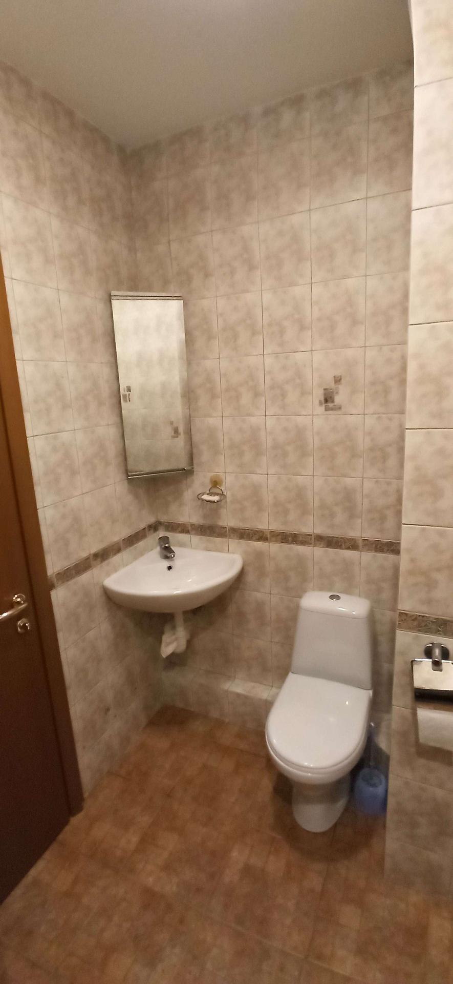Один из с/у только хозяйский, вход прямо из спальни. В нём большая (1,8м) чугунная французская ванна, 2 раковины для умывания, иранский мрамор. Изолированный кирпичными стенами и дверью унитаз.