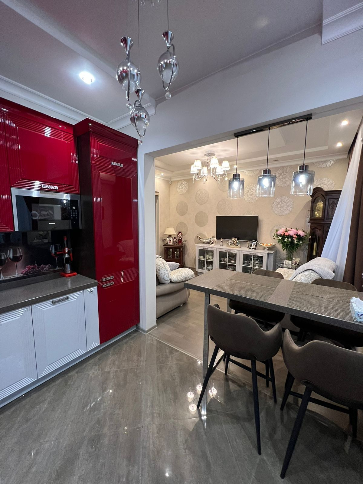 Квартира продается с кухонным гарнитуром с встроенной техникой и встроенной мебелью.
