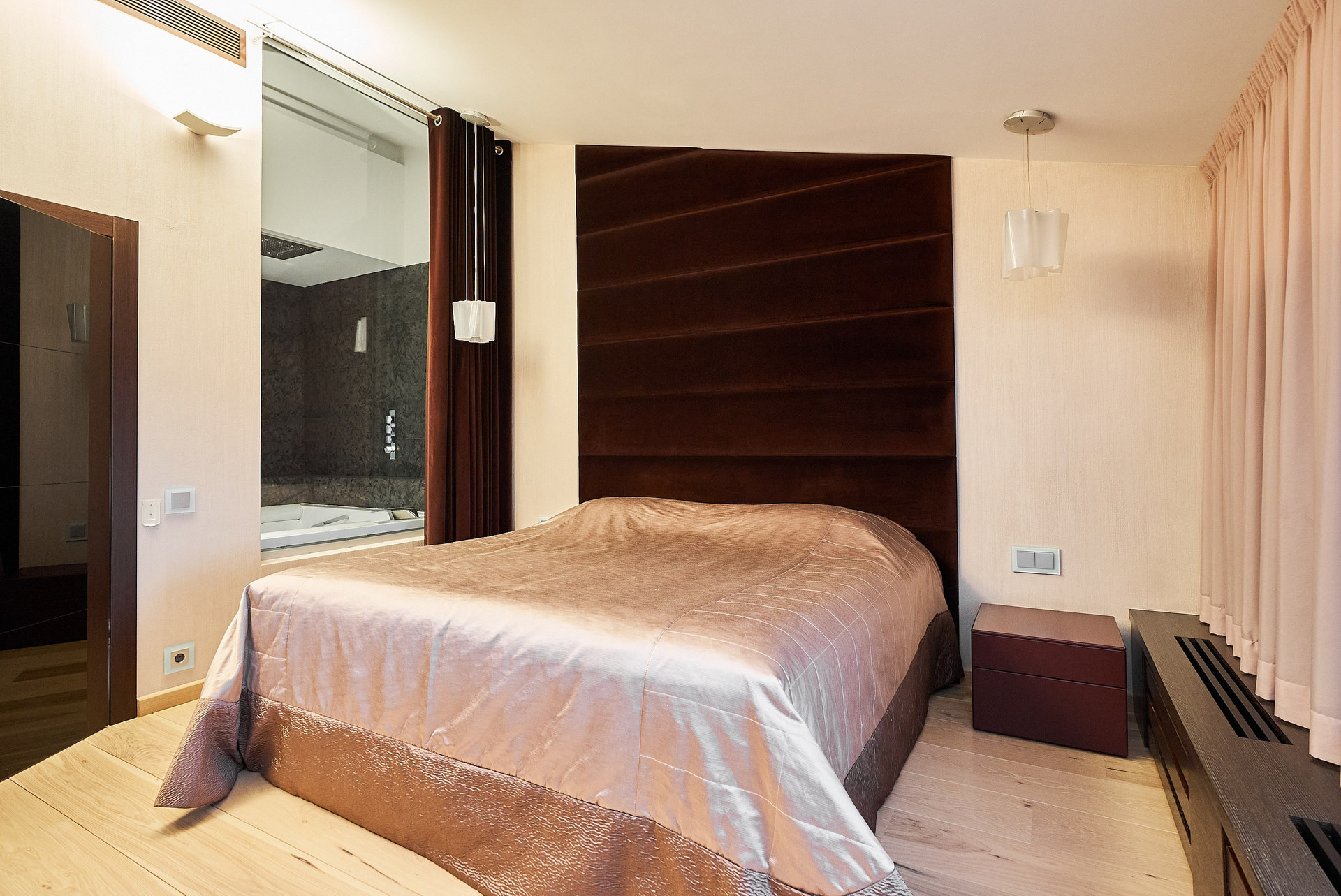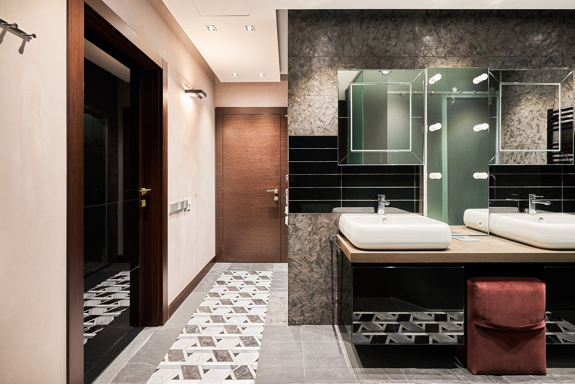 - Приватная зона: включает две спальни, одна из которых - мастер-спальня со SPA-пространством (джакузи, современный хаммам) и гардеробной, вторую - можно использовать как детскую или кабинет/гостевую спальню.