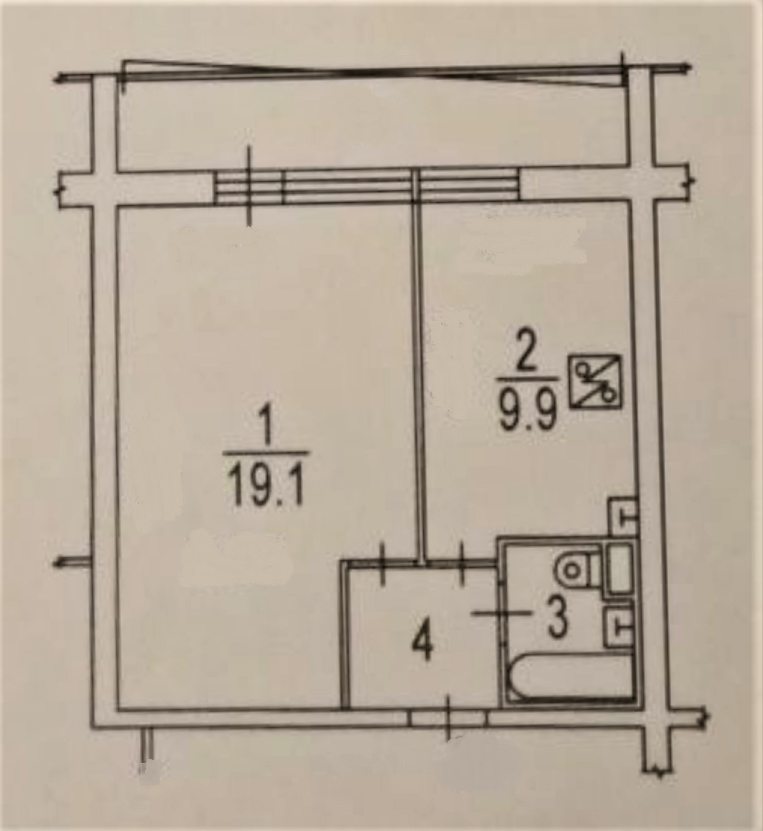 Жилая площадь 19.1 м2