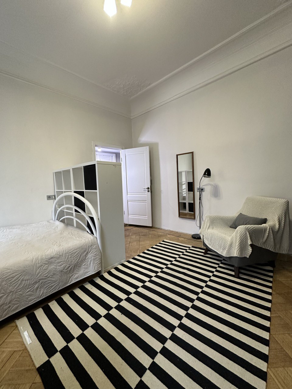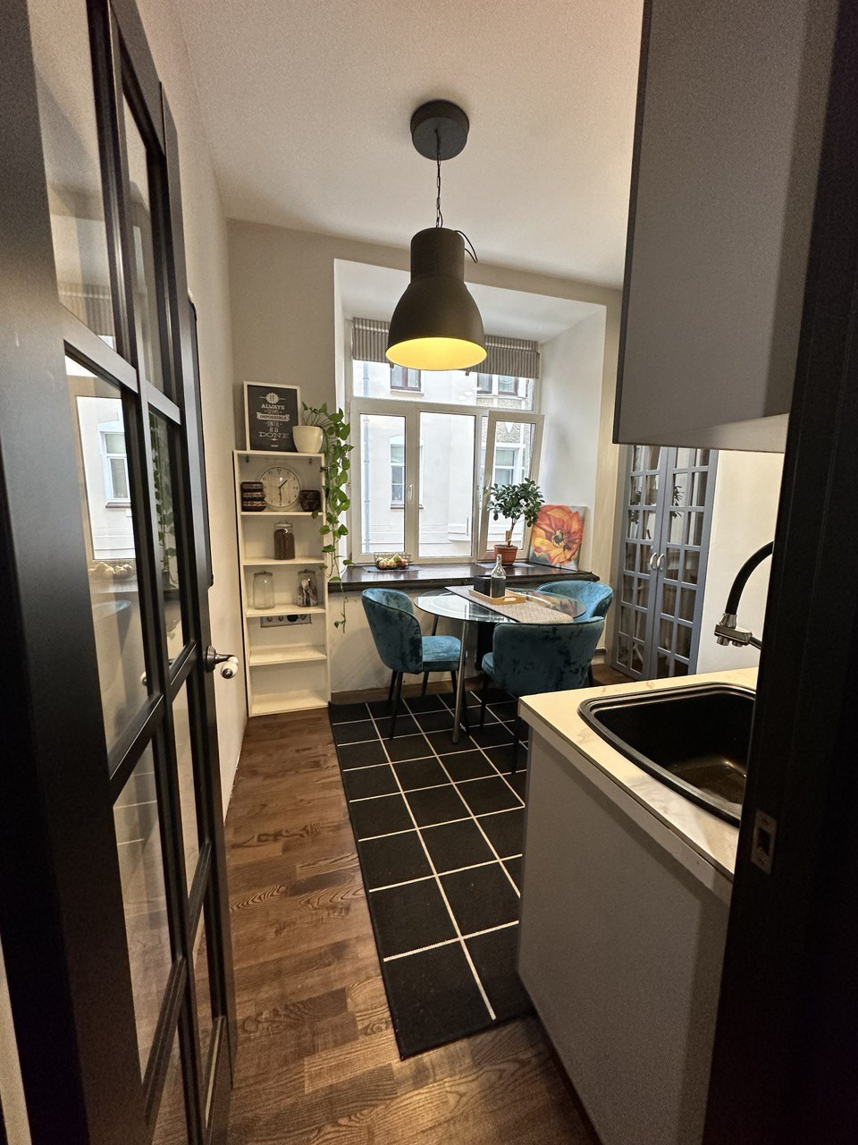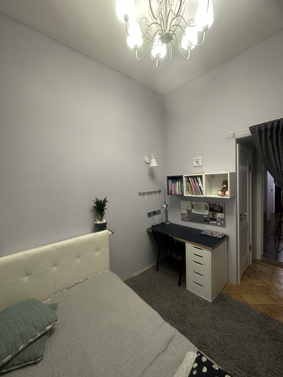 Эргономичная кухня, уютная гостиная для приема друзей, две полноценные спальни, раздельный с/у. Две небольшие комнаты при желании можно восстановить и объединить в одну, оставить приватные спальни, оборудовать кабинеты для работы и обучения или сдать постояльцам вариаций множество, несущих стен нет.