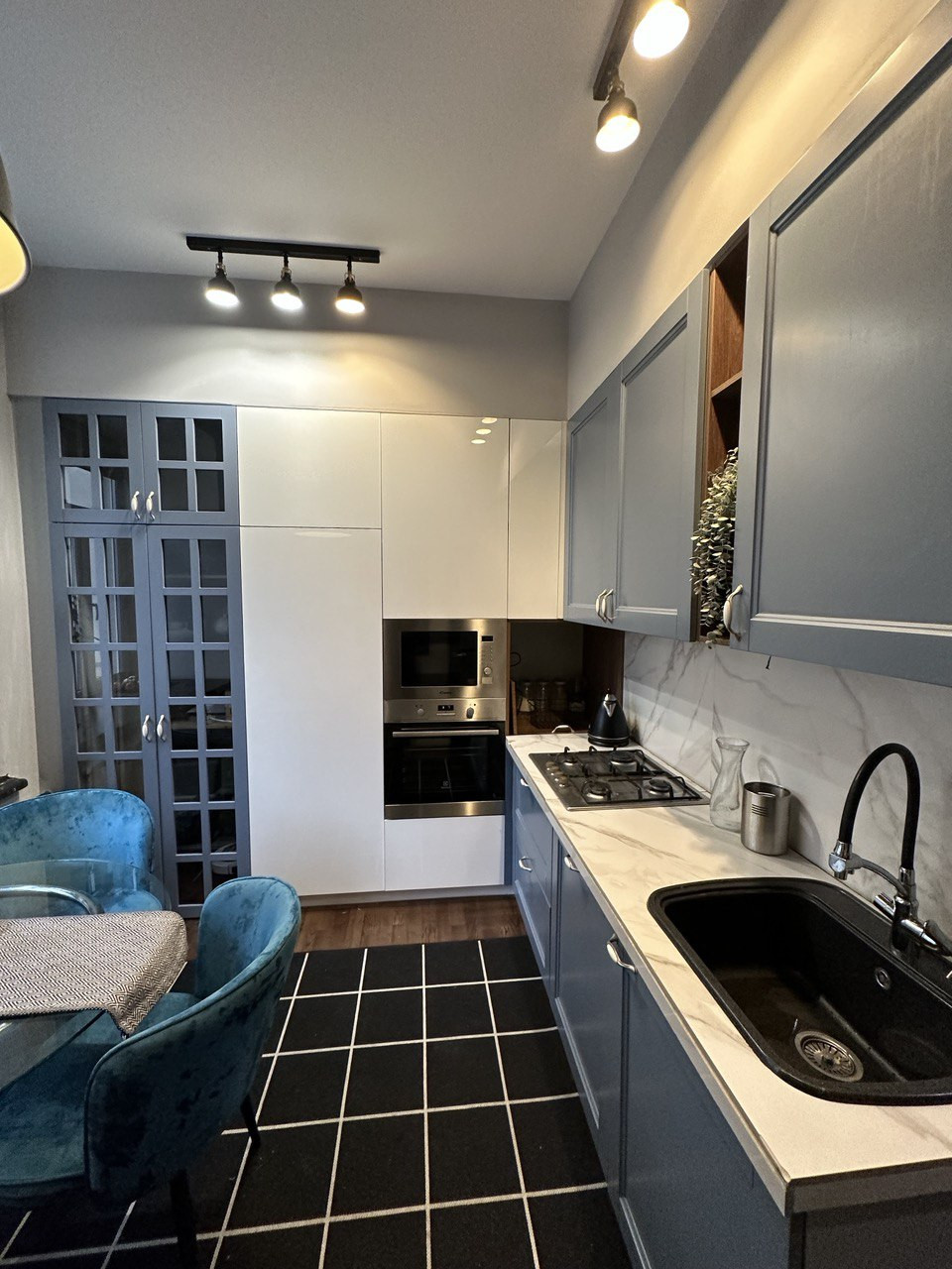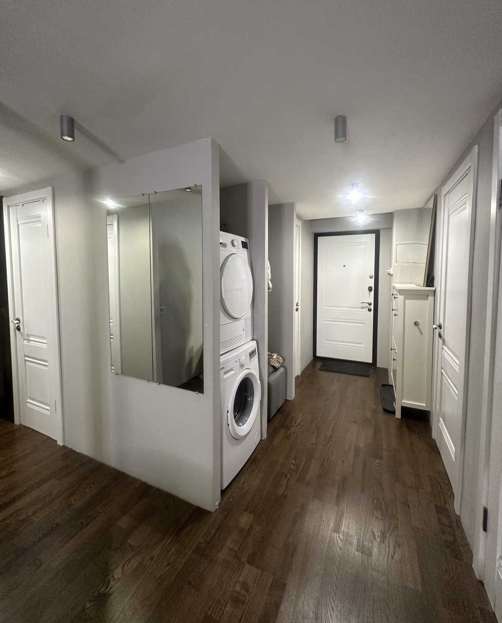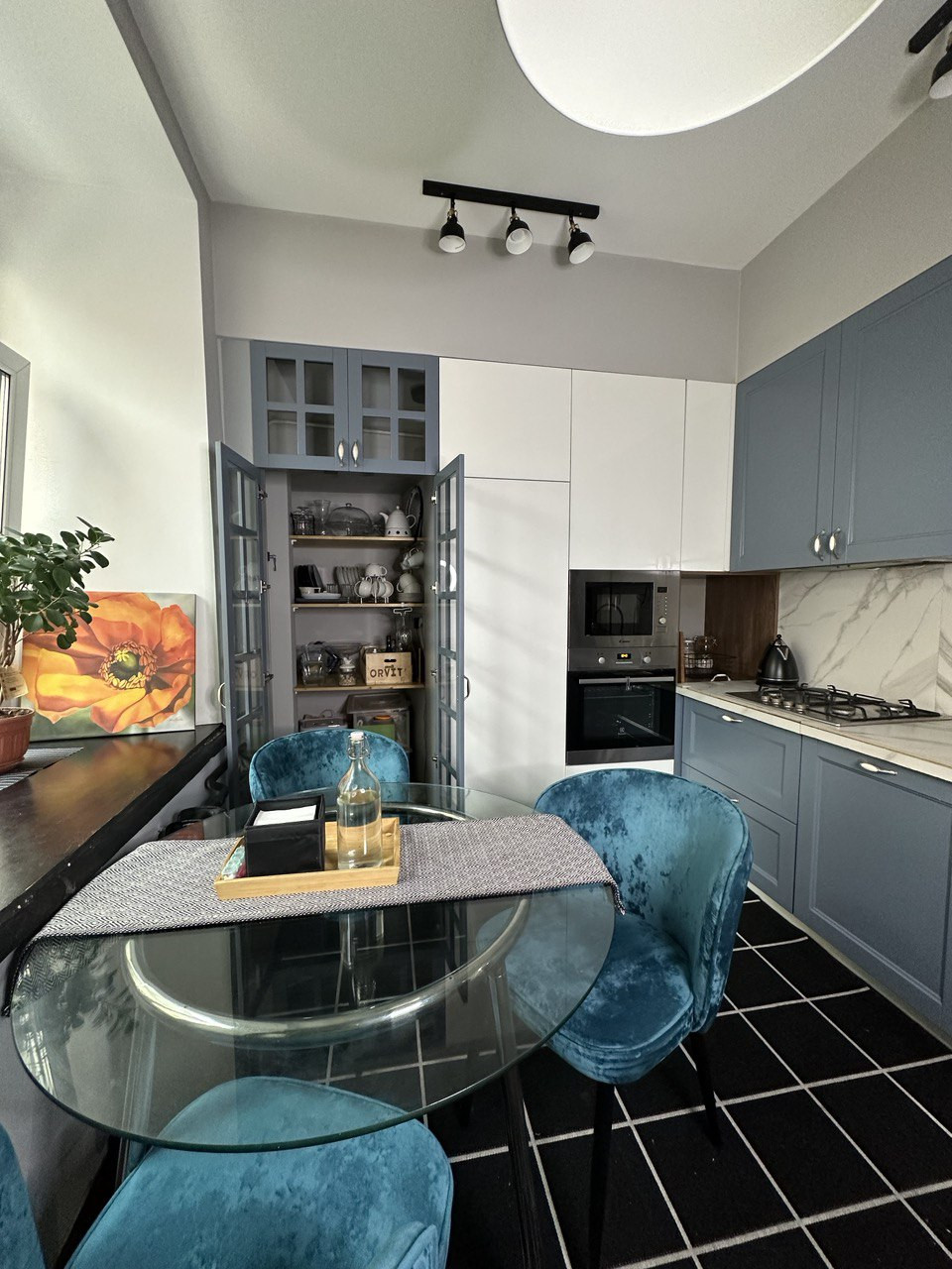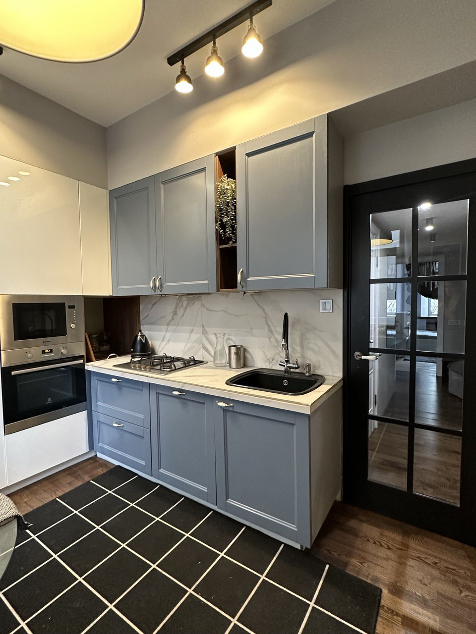 Эргономичная кухня, уютная гостиная для приема друзей, две полноценные спальни, раздельный с/у. Две небольшие комнаты при желании можно восстановить и объединить в одну, оставить приватные спальни, оборудовать кабинеты для работы и обучения или сдать постояльцам вариаций множество, несущих стен нет.