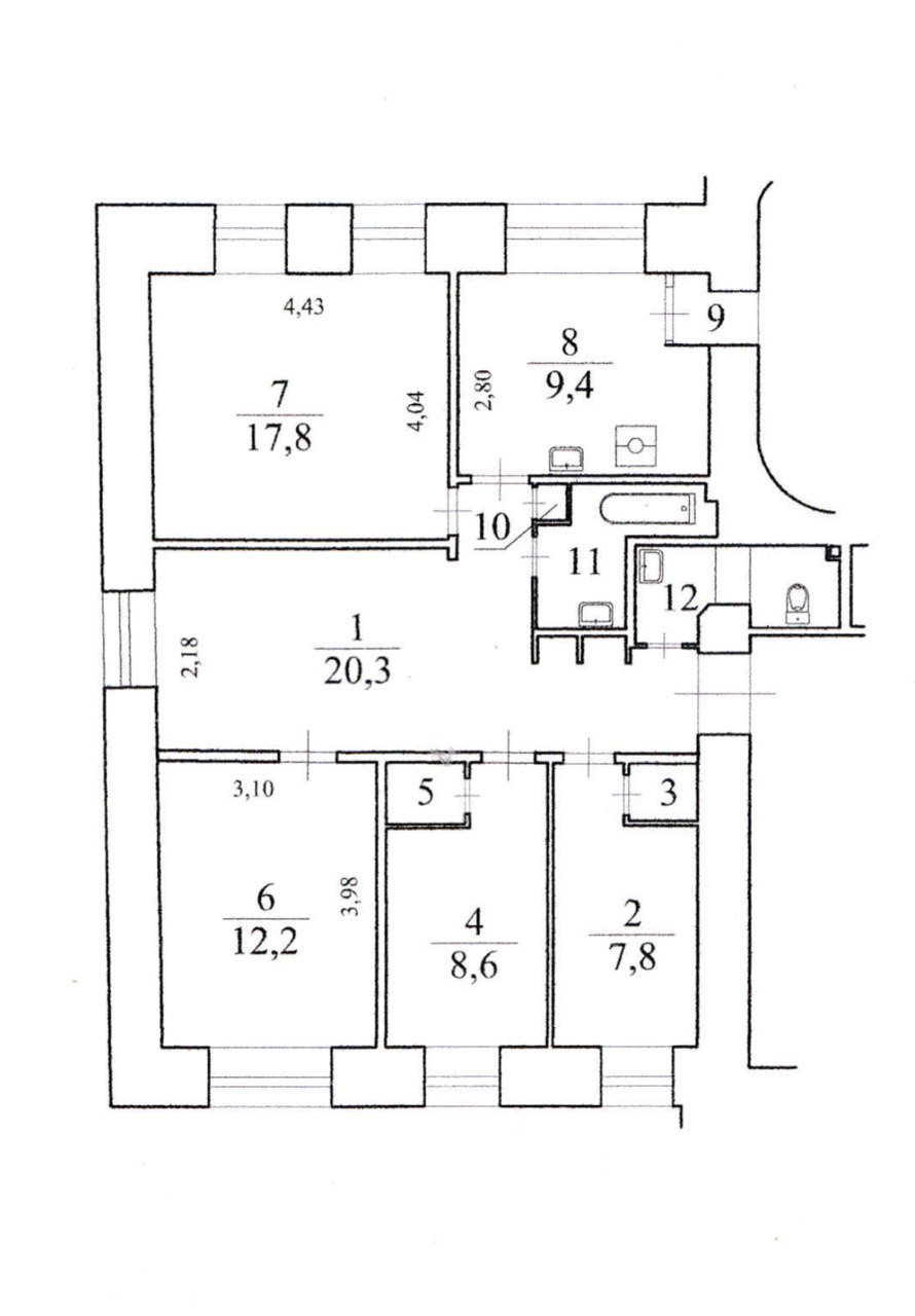 Квартира с функциональной планировкой с окнами на три стороны света (нет соседей), переоборудована в 5-тикомнатную.