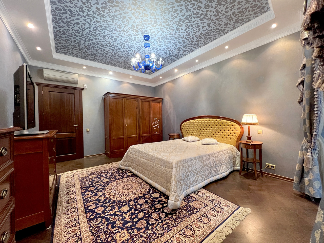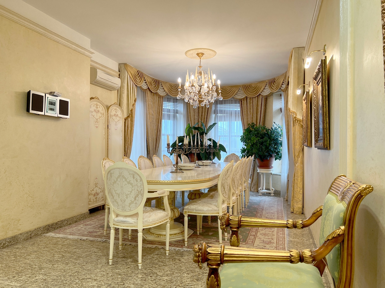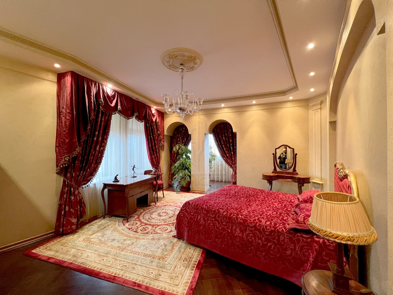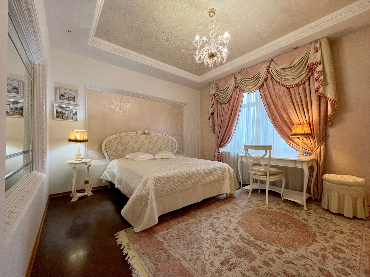 Квартира полностью меблирована эксклюзивной мебелью и полностью укомплектована требуемой б/техникой премиум-класса, 7-и комнатная (5-6 спален и 4 с/у), общей площадью 400 кв.м., расположена на 23/23 монолитно-кирпичного дома 2002 г.п. с п/паркингом, высота потолка 3 м.