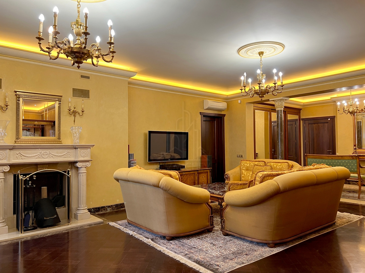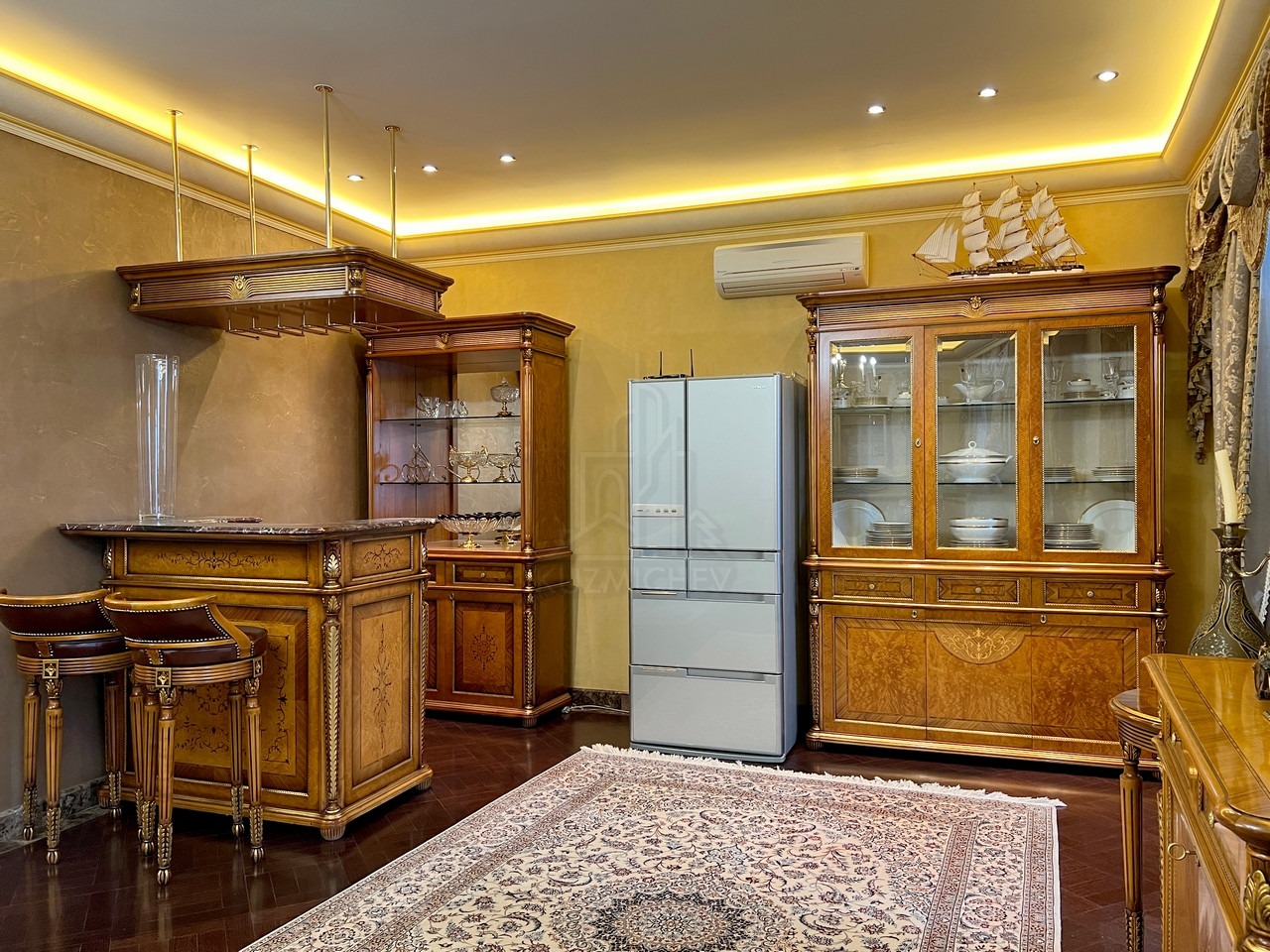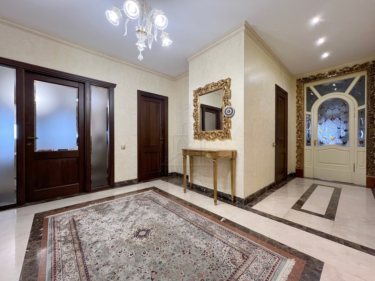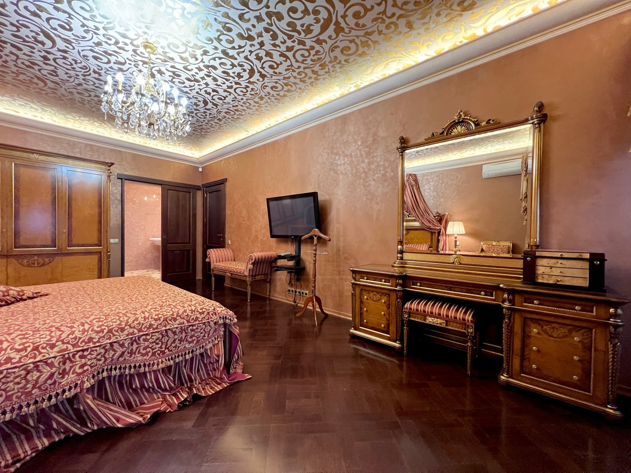 Квартира полностью меблирована эксклюзивной мебелью и полностью укомплектована требуемой б/техникой премиум-класса, 7-и комнатная (5-6 спален и 4 с/у), общей площадью 400 кв.м., расположена на 23/23 монолитно-кирпичного дома 2002 г.п. с п/паркингом, высота потолка 3 м.