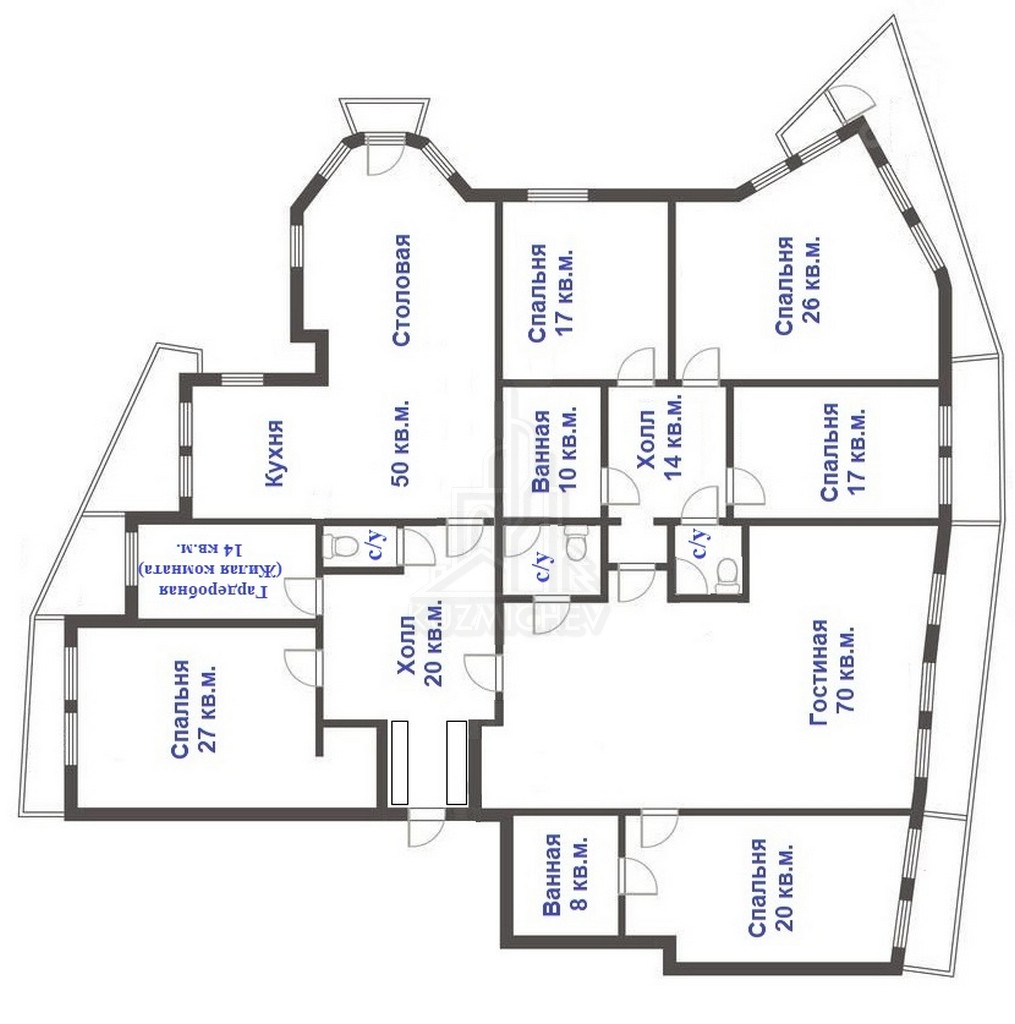 -  Изолированные спальни 17-17-26-27 кв.м.;