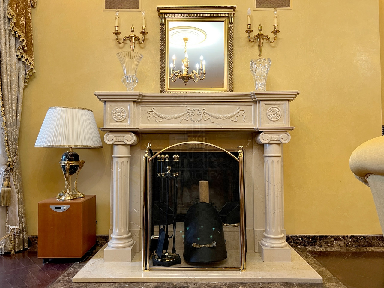 - Гостиная 70 кв.м., визуально разделенная на несколько зон: