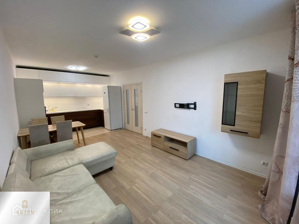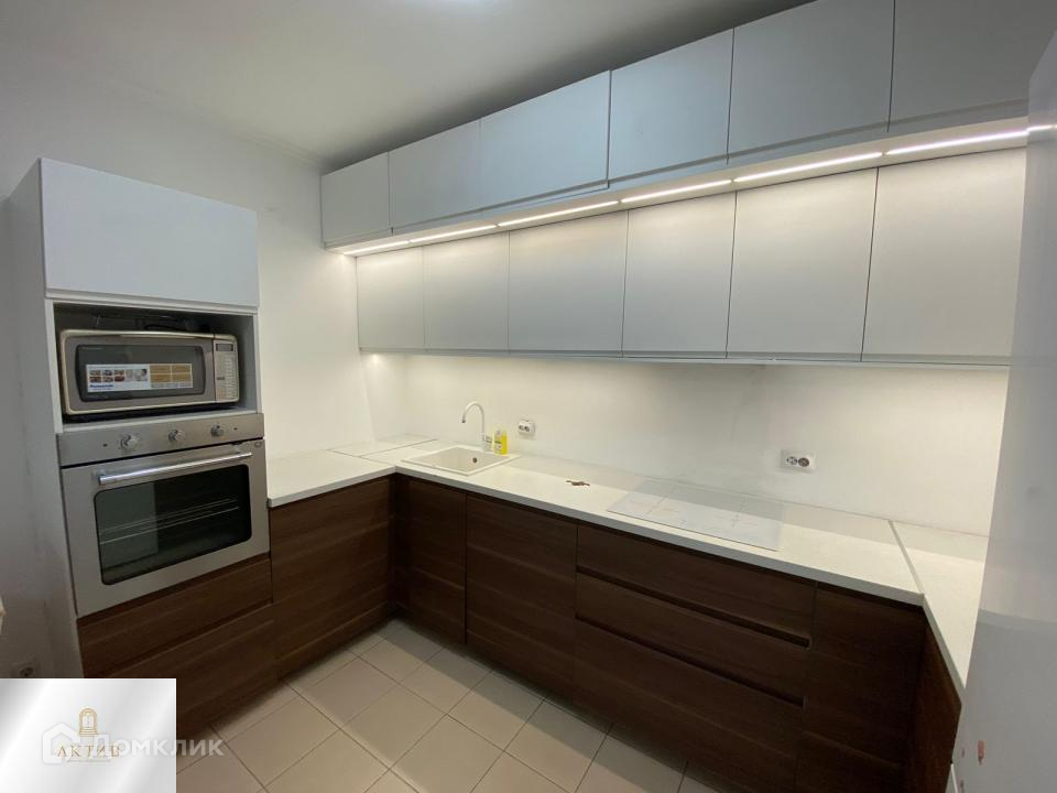 Квартира укомплектована современным кухонным гарнитуром с бытовой техникой.