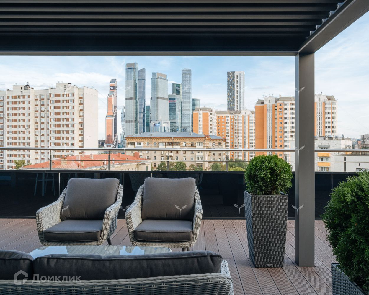террасы пентхауса открываются панорамные виды на Москву Сити. Ничего