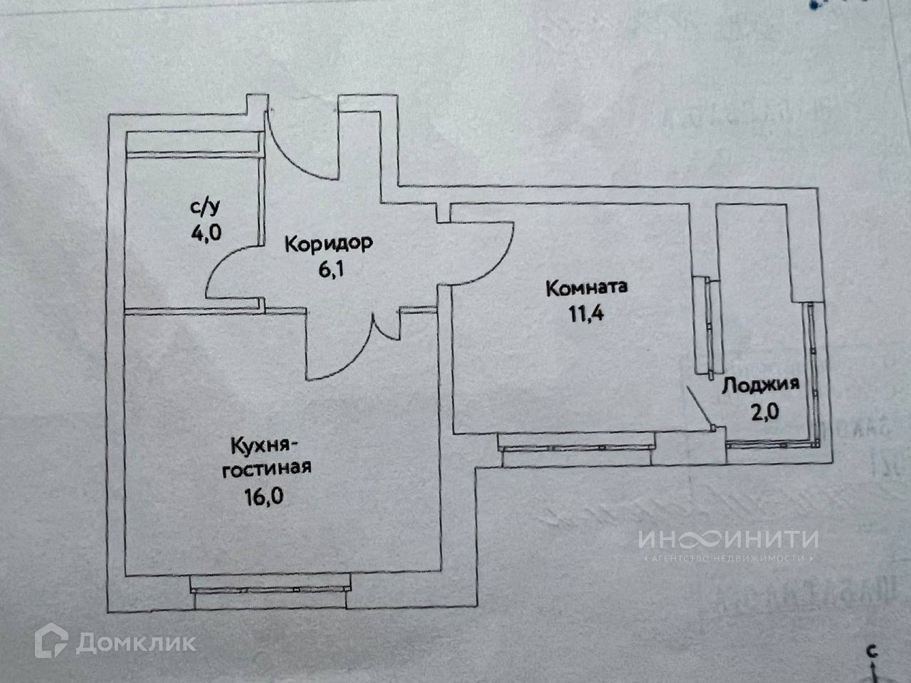 Жилая площадь 11.4 м2