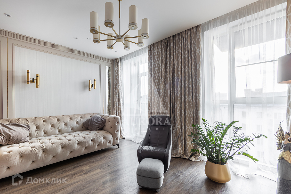 Планировка: объединенная зона кухни-гостиной, спальня, детская, ванная комната, гостевой с/у, постирочная, гардеробная. Балкон.
