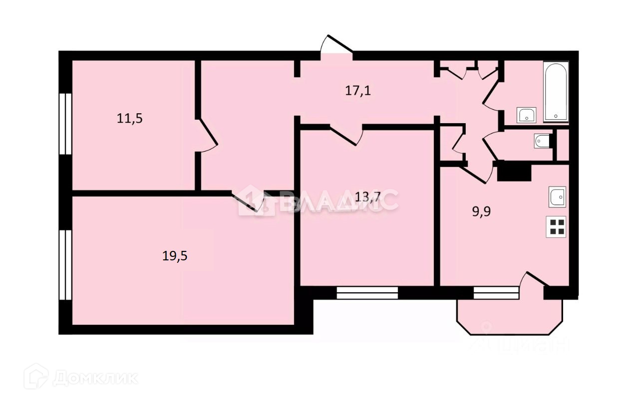 Хорошая планировка: три изолированные комнаты, раздельный санузел, просторный коридор, удобная и практичная кухня.