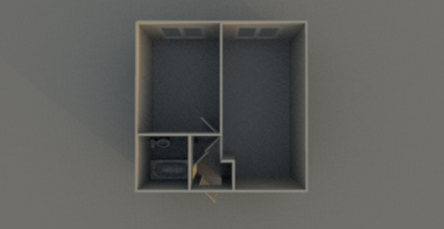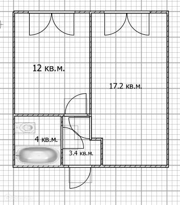 - Кухня-гостиная 17.2 кв.м., комната 12 кв.м., санузел 4 кв.м., коридор 3.4 кв.м.