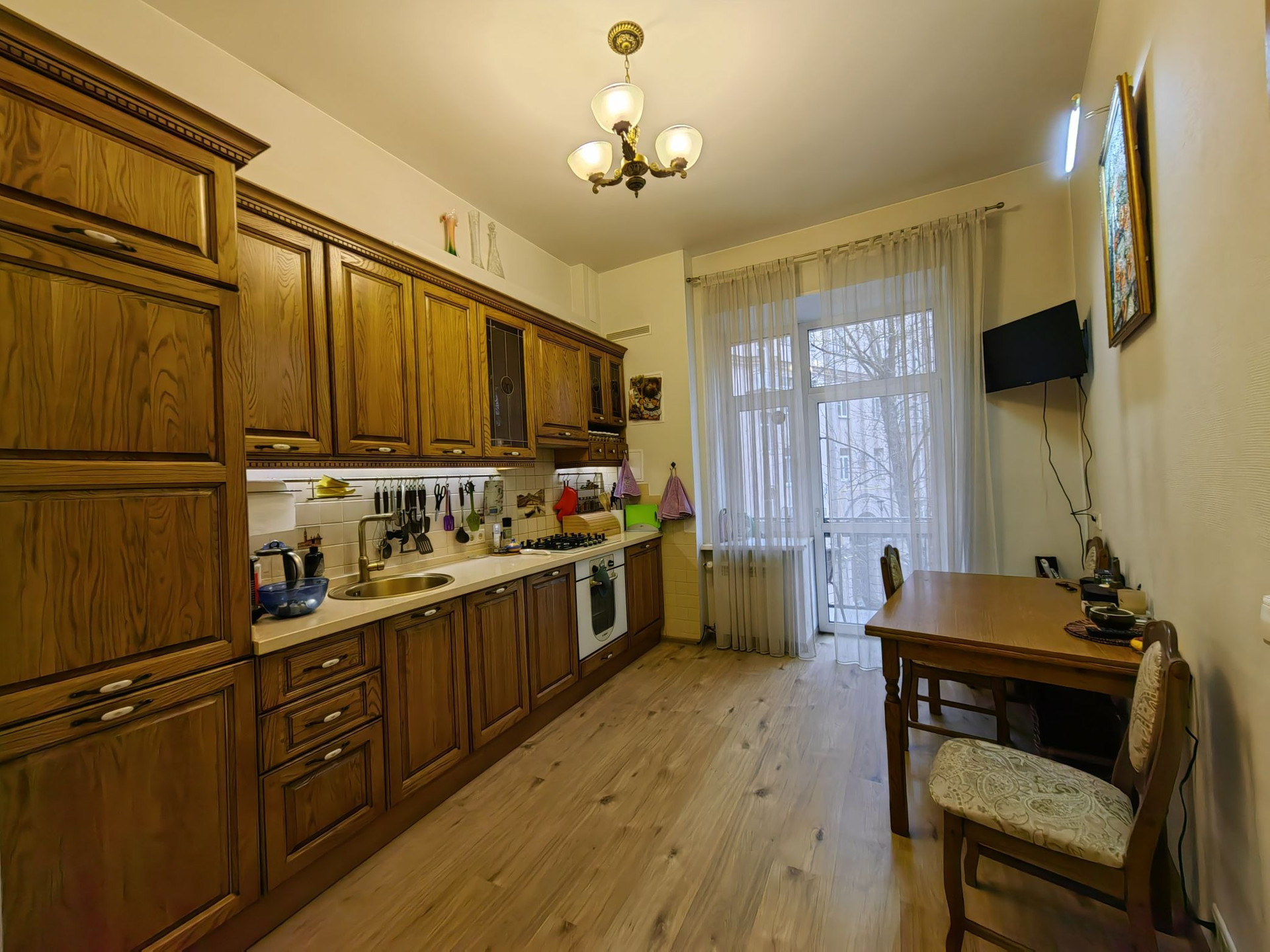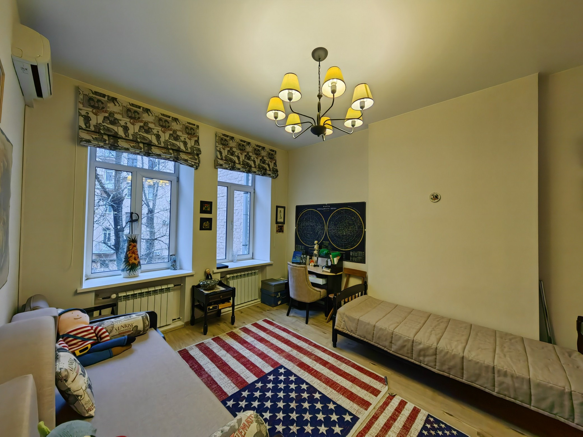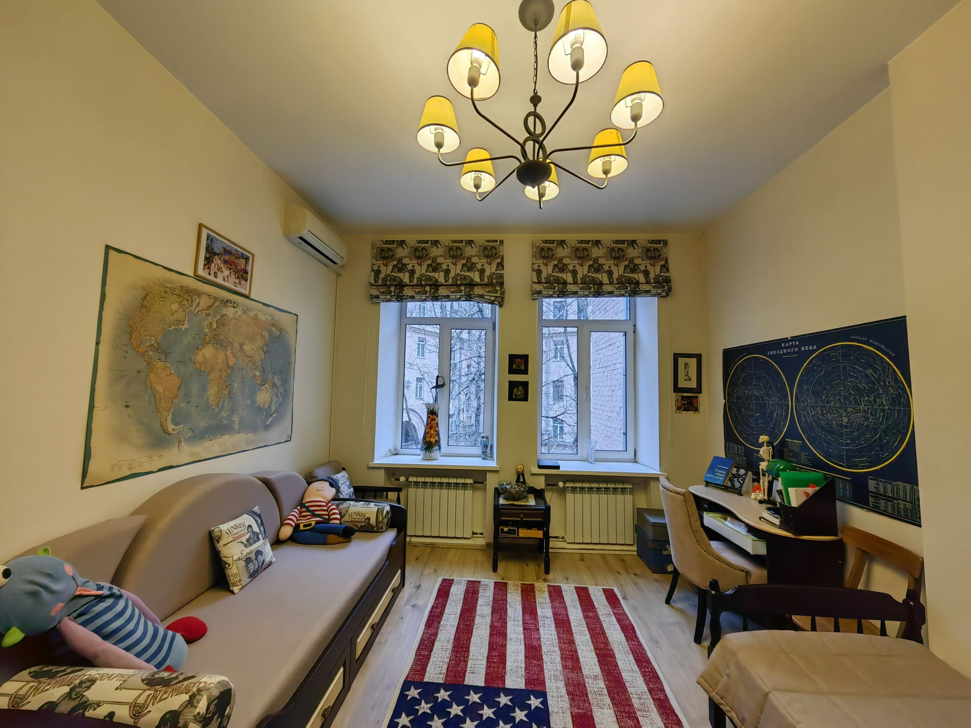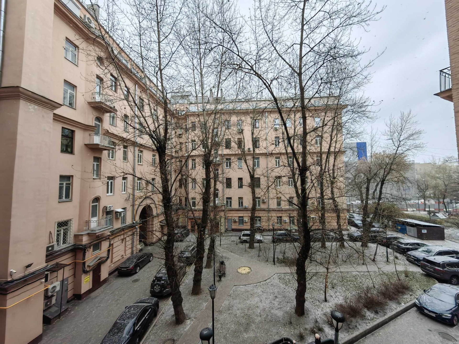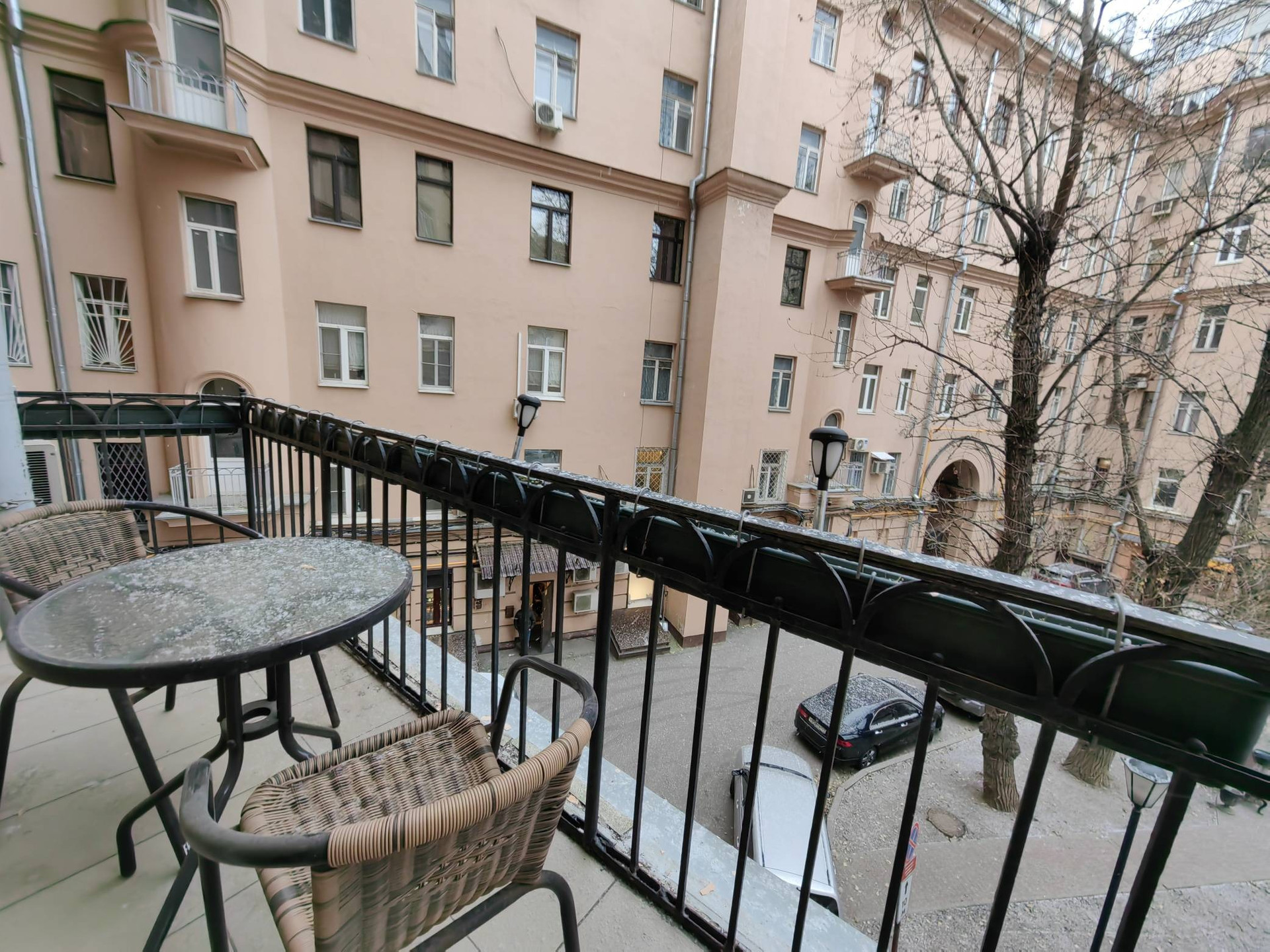 Окна выходят в тихий зелёный двор, в котором не слышно шума большого города.