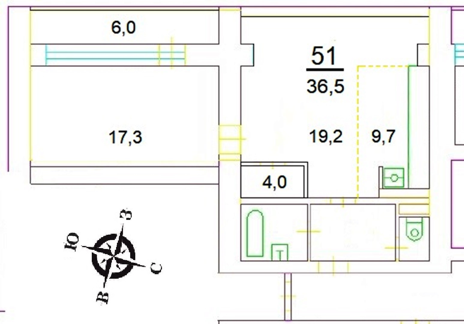 Общая площадь 51 м2