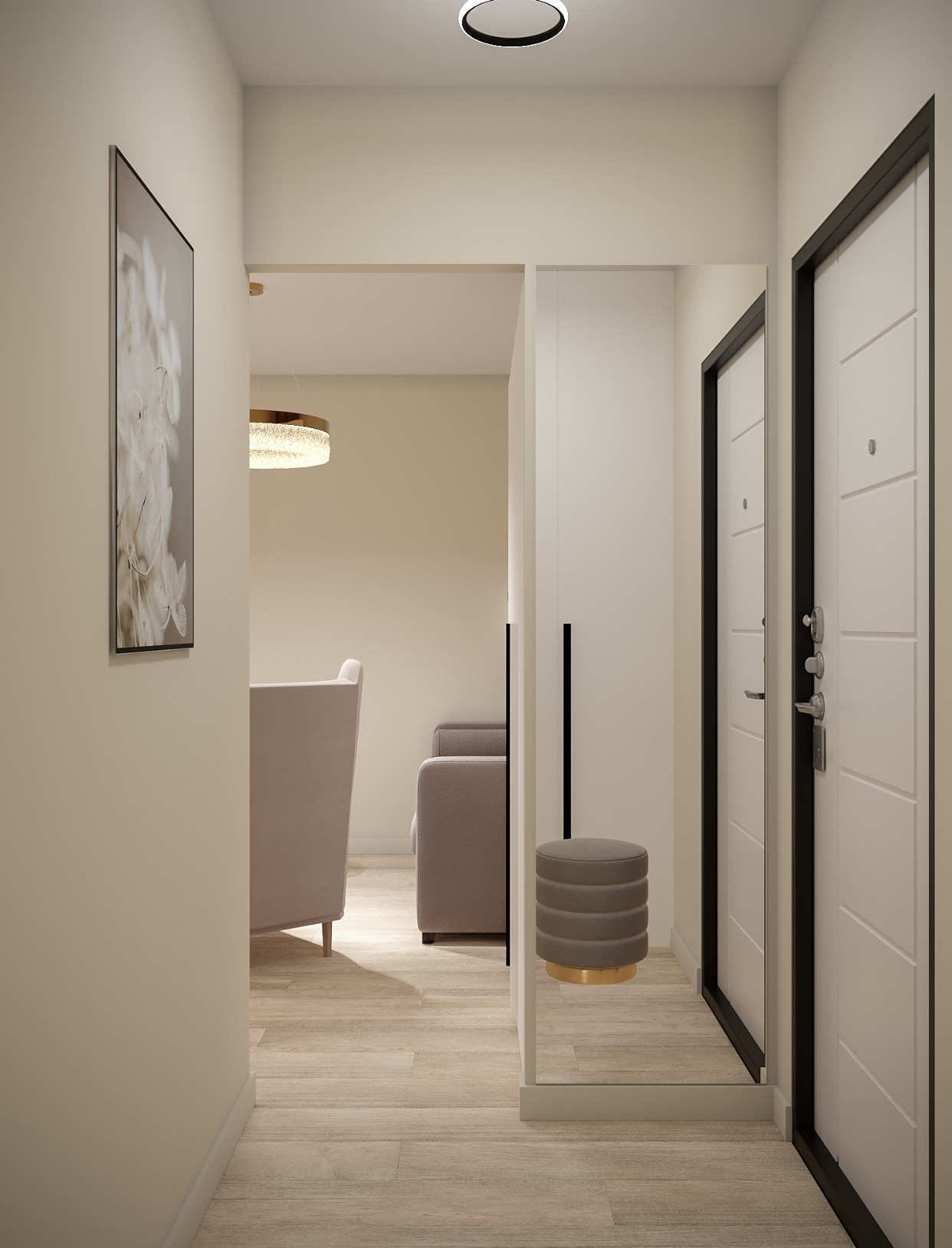 -системы хранения в комнате и коридоре.