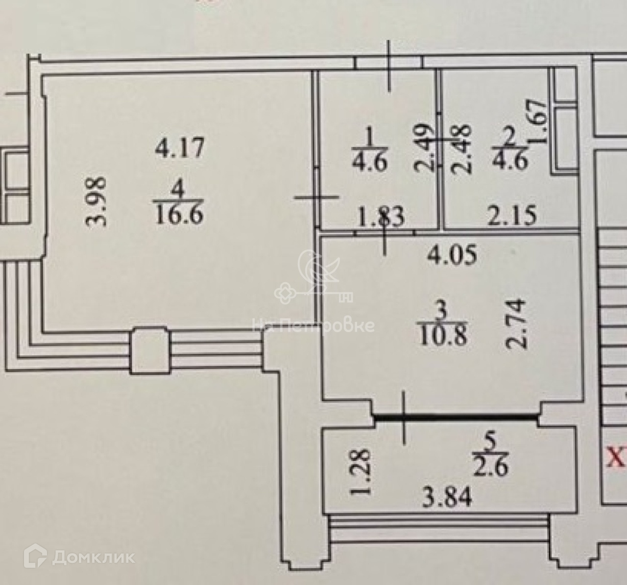 Жилая площадь 16.6 м2