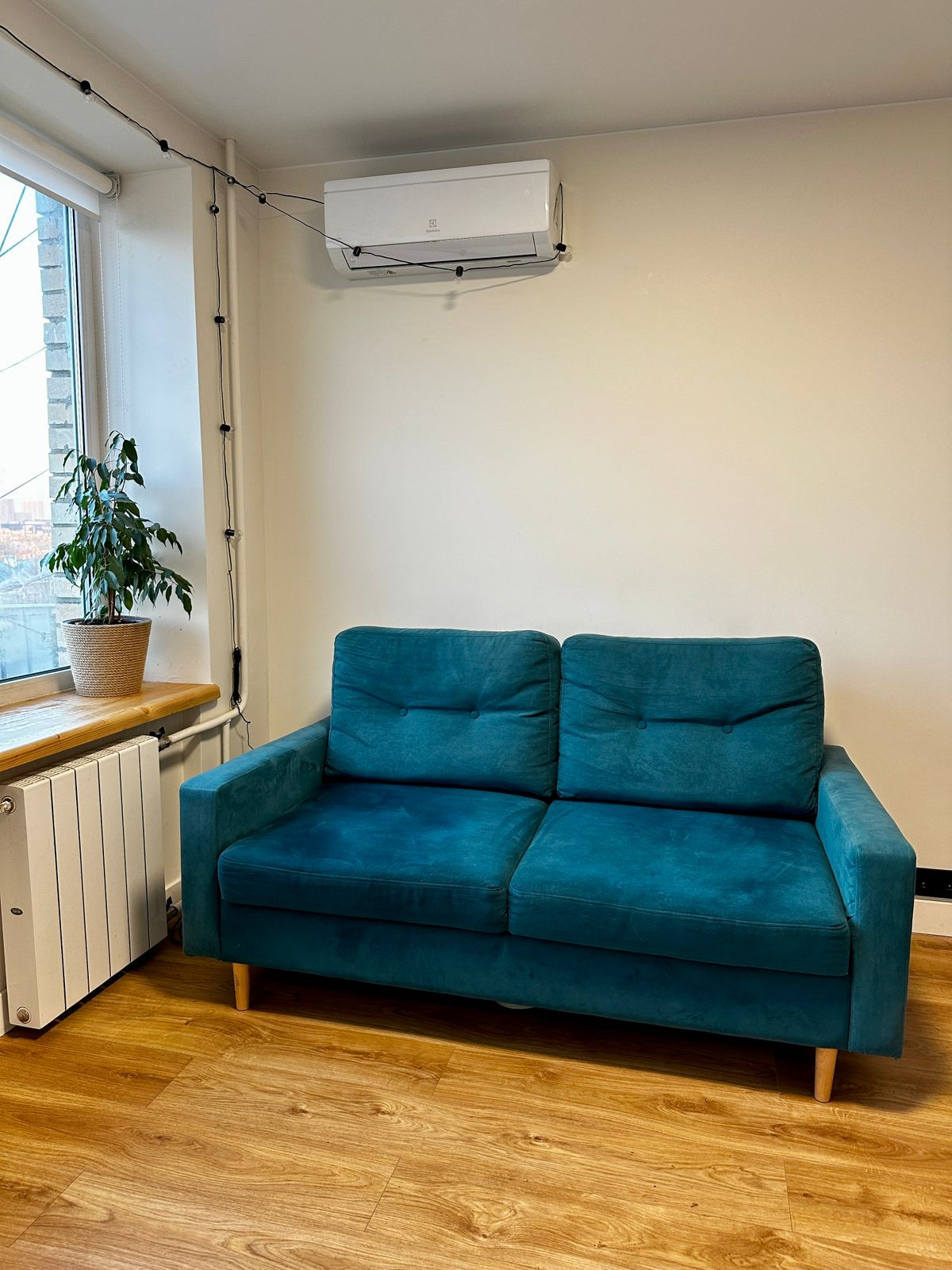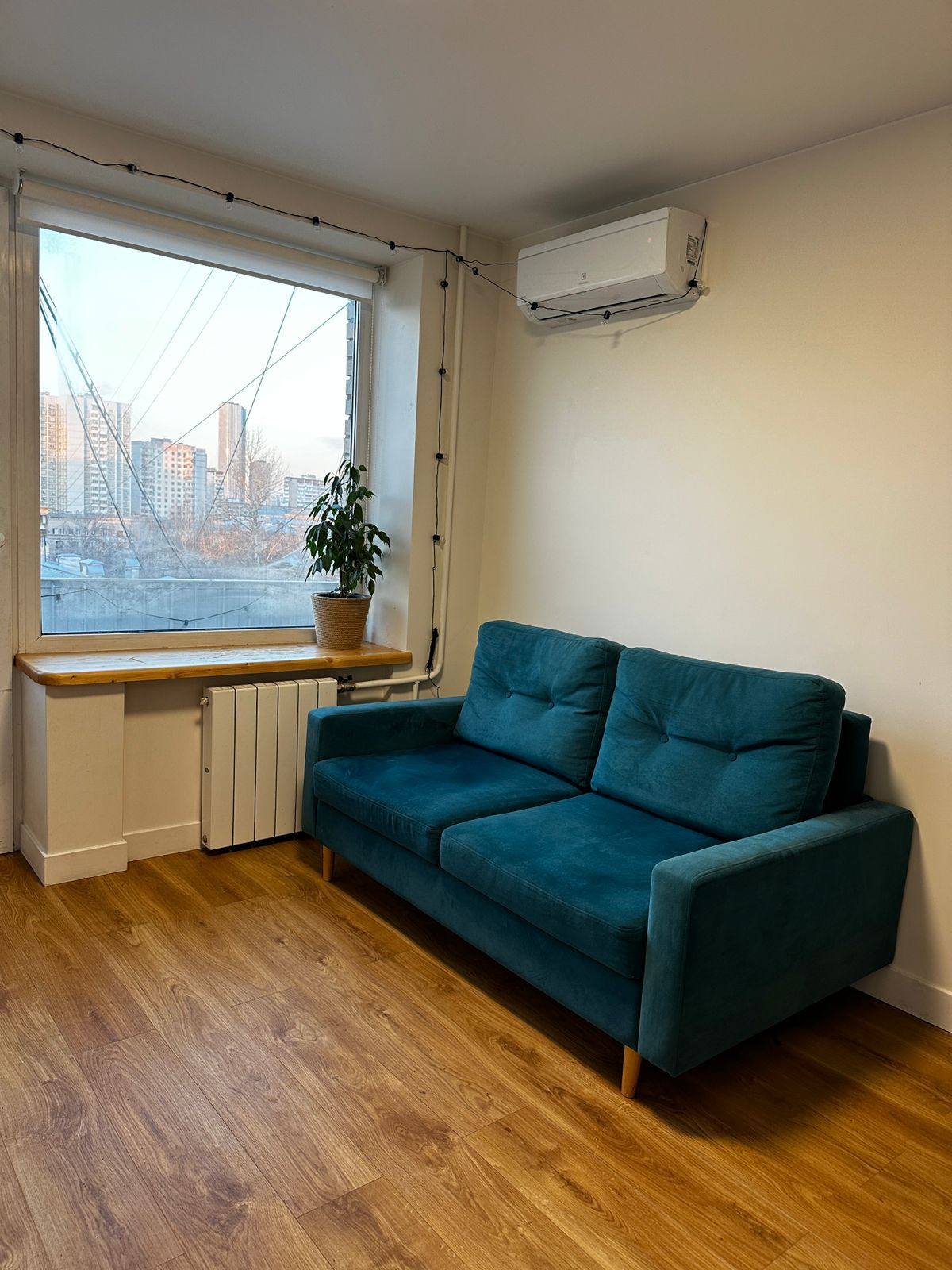 Стены выровнены и покрашены. Новая электрика и отопительная система.