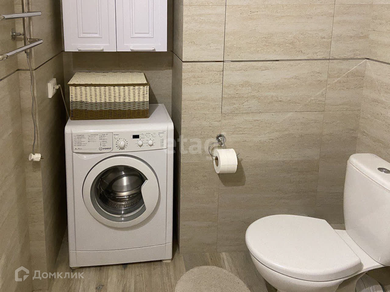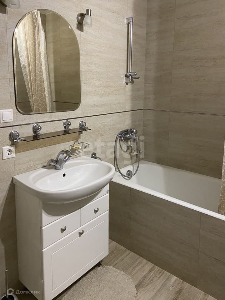 Санузел совмещенный с керамогранитной плиткой, чугунная ванна, а также установлена автоматическая система защиты против протечек