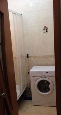 - санузел совмещен в кафеле, душевая кабина, раковина.