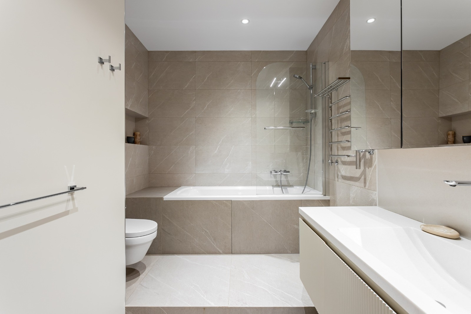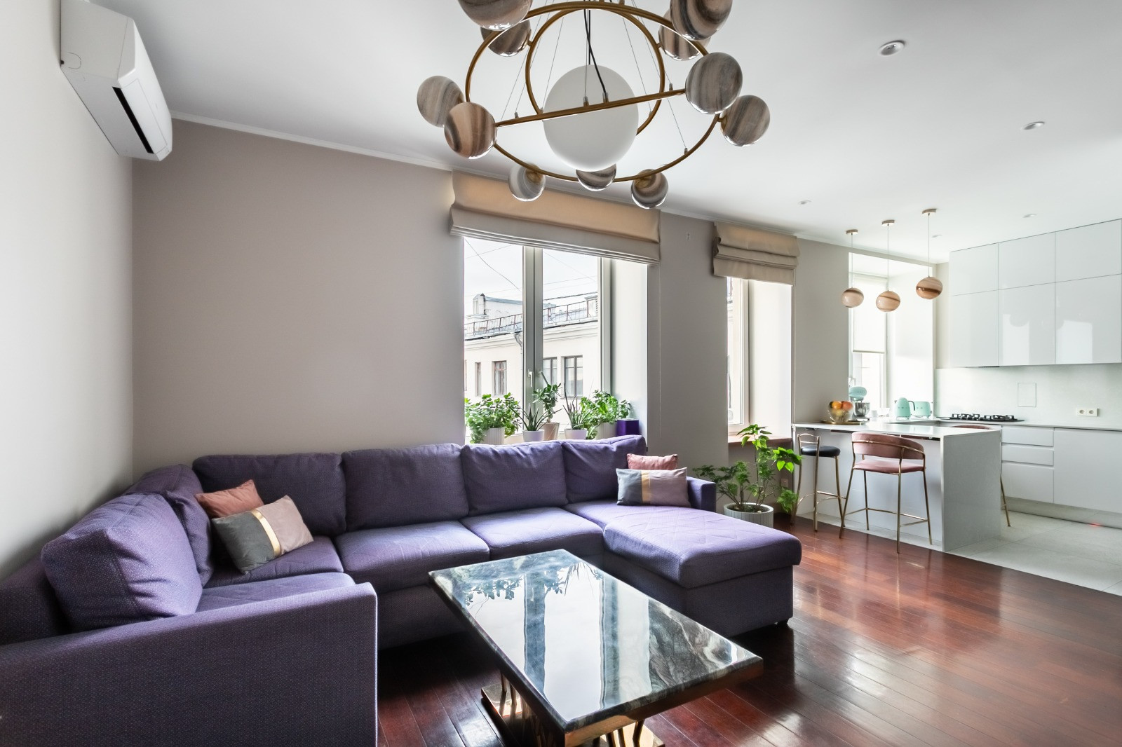 Квартира продается полностью мебелирована (мебель производство Италия) и оснащена, всей необходимой для жизни, техникой: варочная панель (газ) Neff, микроволновая печь и духовой шкаф и посудомоечная машина Electrolux, двухкамерный холодильник Toshiba, стиральная и сушильная машина Asko, био-камин, плазма в гостиной и спальне, кондиционеры в каждой комнате, система очистки воздуха Теон  все остается новому покупателю.