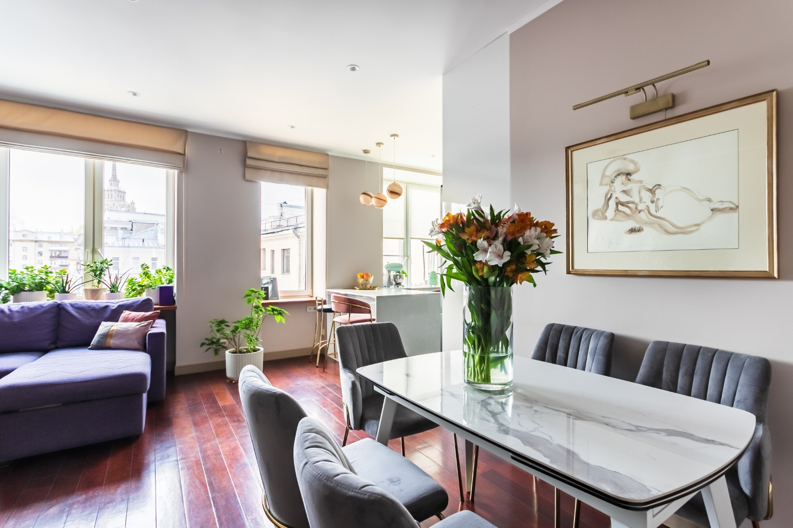 Окна выходят на две стороны, в уютный внутренний двор и с прекрасным видом на Рочдельскую и Сталинку на Баррикадной.