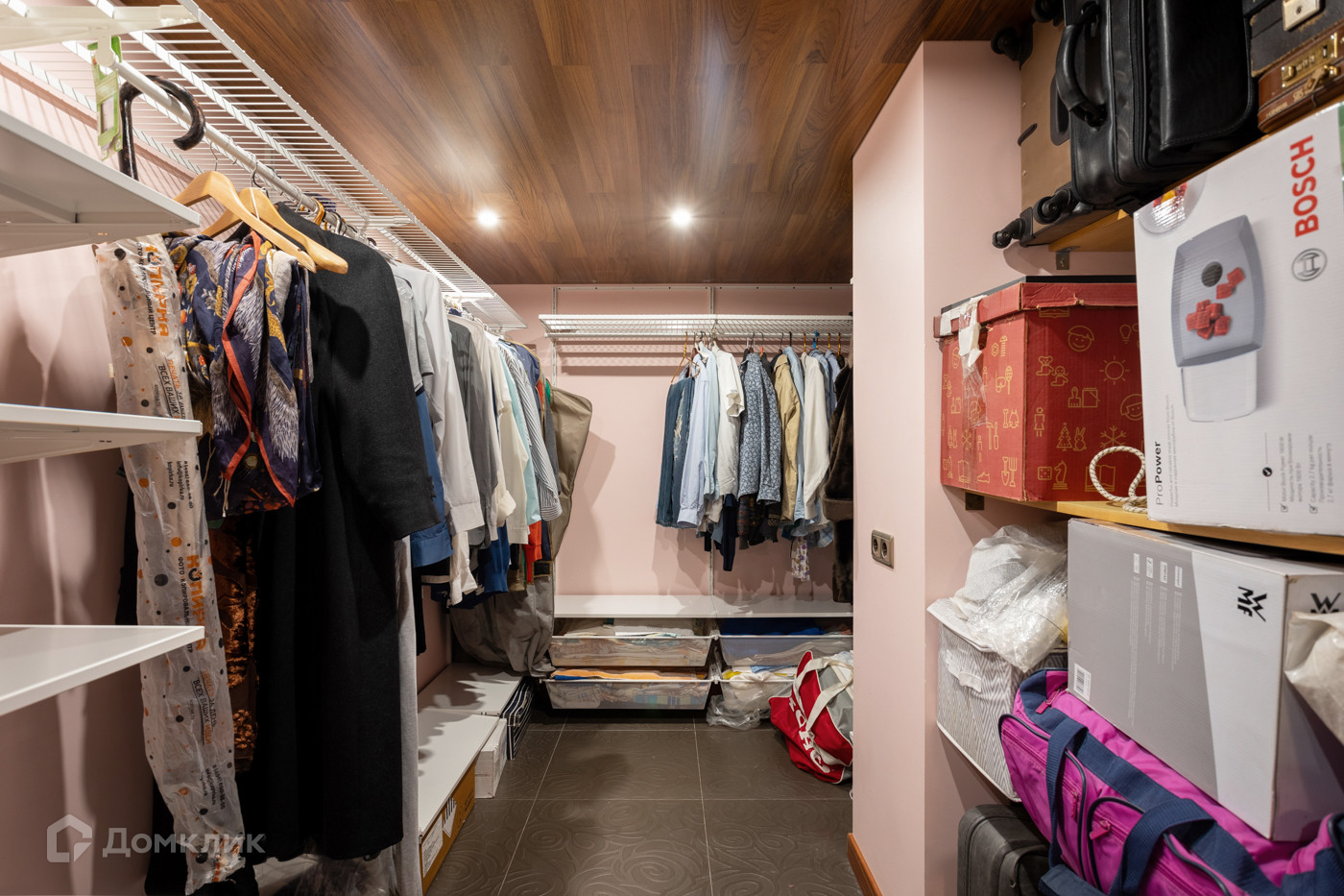 Гардеробная комната: Потолок сделан Teak Asia, на полу постелен керамогранит, внутри 2 шкафа под обувь-Италия, и заказная мебель с выдвижными ящиками.