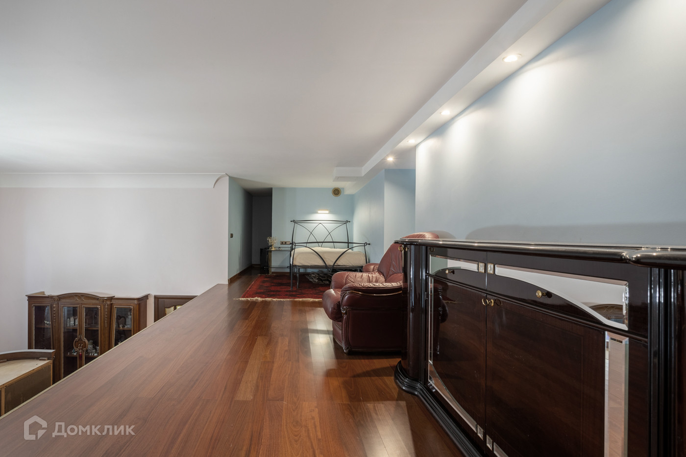 Кабинет/Спальня на 2 этаже: Сочетание естественного и искусственного света, сохраняет приватность в спальне и рабочую атмосферу в кабинете. В зоне спальни, установлена изящная кровать, прикроватный столик, и кресло Drovandi. Территория под кабинет, украшается комодом Rondo и креслом, Drovandi Италия.
