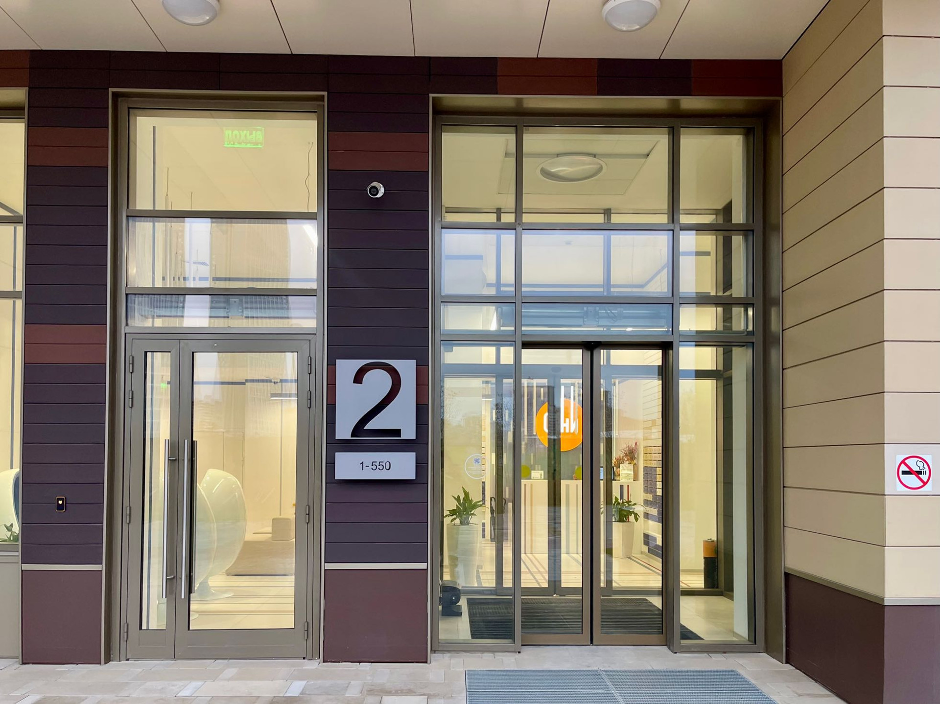 Стильная входная группа, ресепшен, закрытый двор.