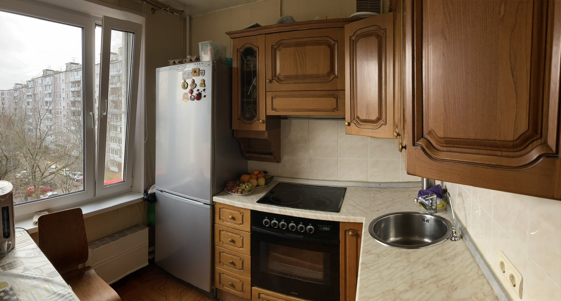 Кухня полностью оборудована мебелью и техникой, которая останется новым владельцам.
