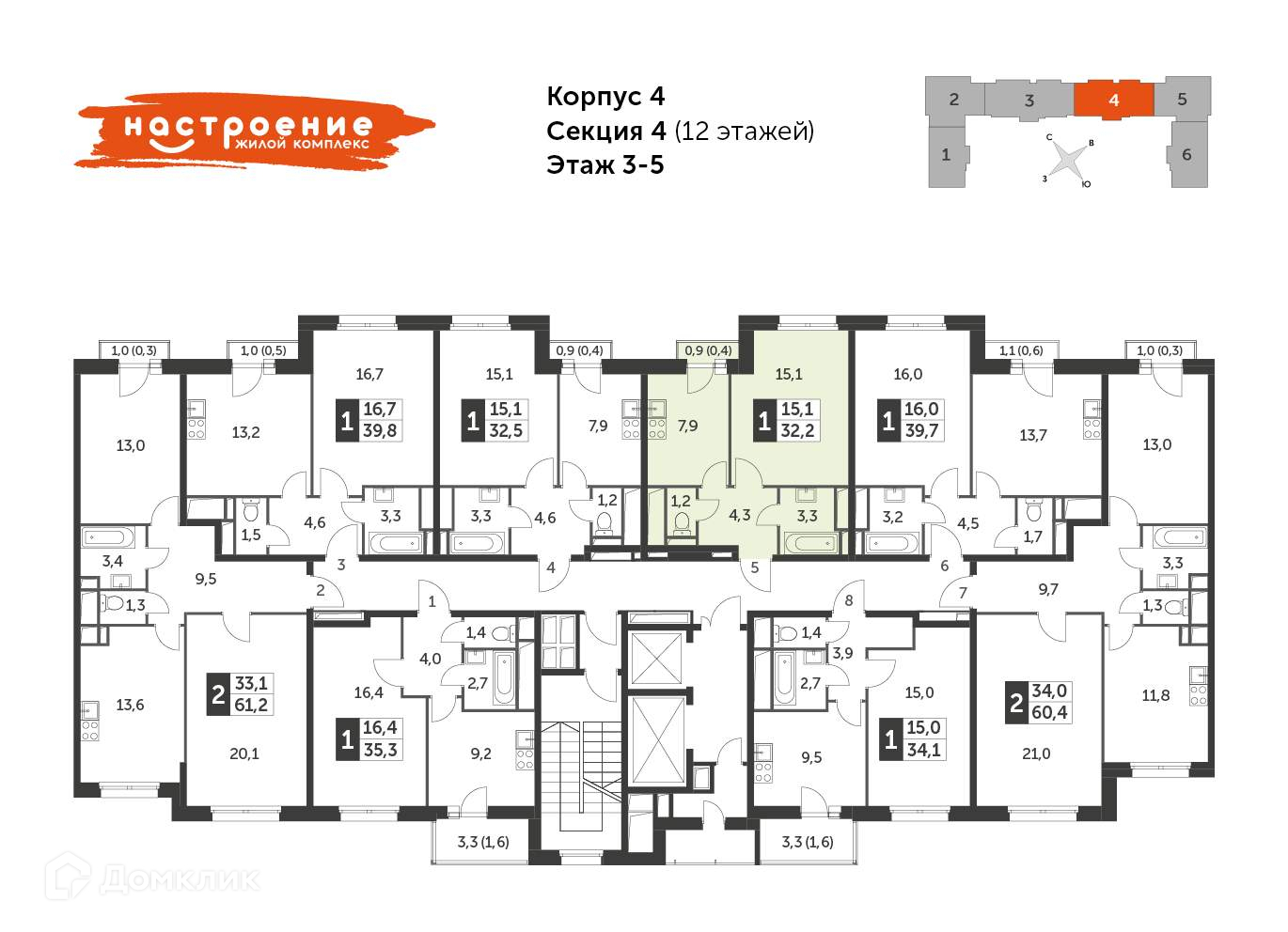 Продаётся 1-к квартира №561 в сданном корпусе общей площадью 32.3 кв.м. на 3-м этаже 12 этажного дома.