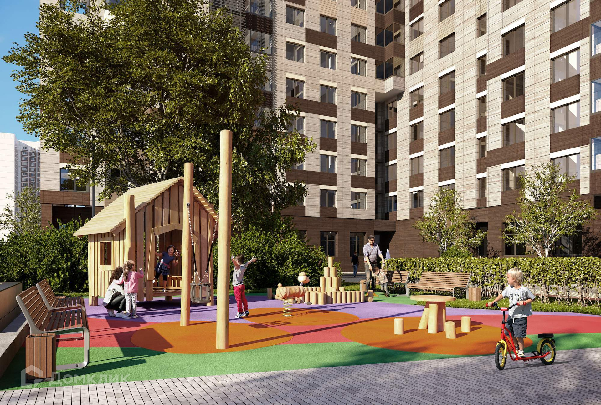 В «Настроении» родители могут не беспокоиться за своих детей. Во дворе есть несколько площадок для детей разного возраста, разработанных по последним стандартам развития детей. Благодаря специальному покрытию и конструкциям, малыши смогут беззаботно играть в полной безопасности.